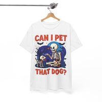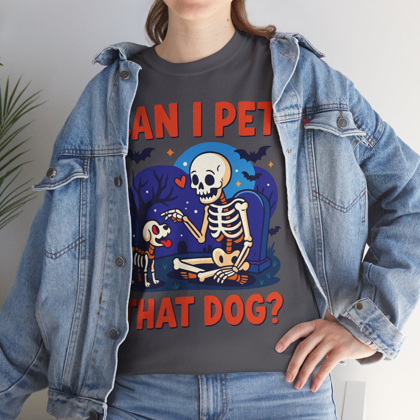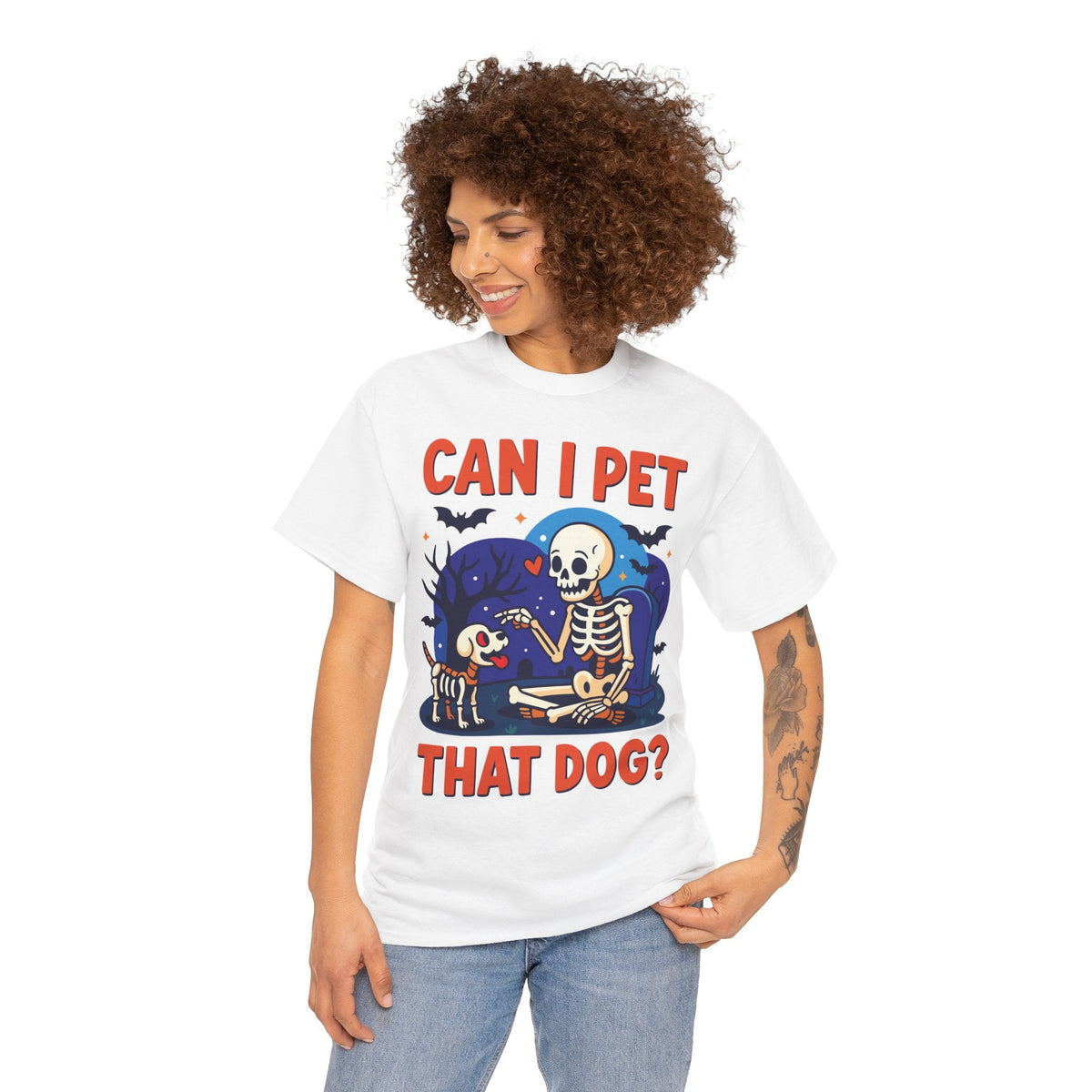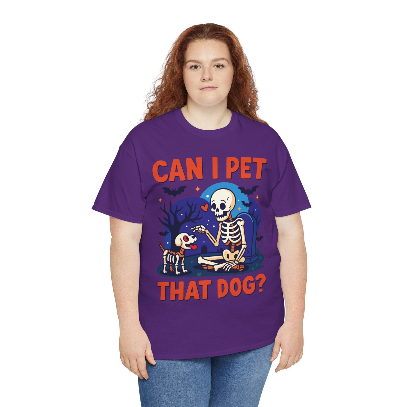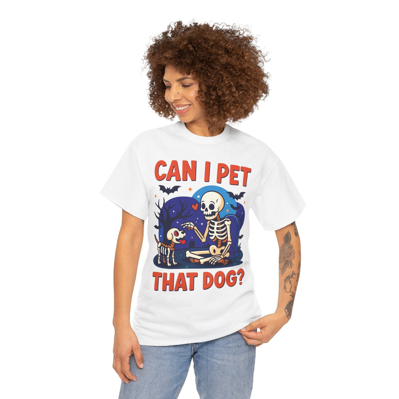 The Can I Pet That Dog Halloween Graphic T-Shirt is a unisex heavy cotton tee that combines comfort, humor, and festive style. Featuring a playful Halloween dog graphic, this funny pet lover t-shirt is perfect for casual outings, dog walking, or spooky celebrations. With its relaxed fit and classic crew neckline, it’s ideal for everyday wear or seasonal events. A great gift for dog owners, pet lovers, and Halloween enthusiasts, this graphic tee adds a whimsical touch to any fall wardrobe.