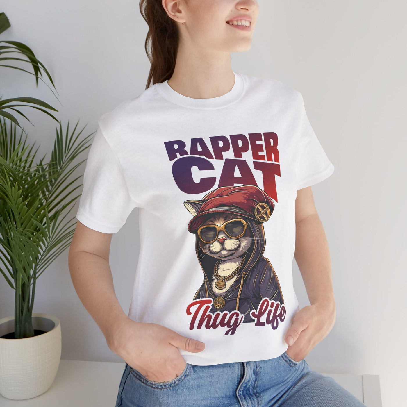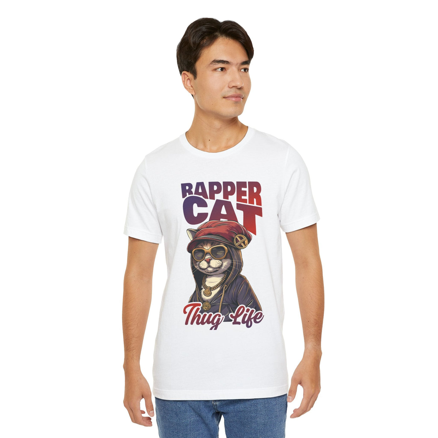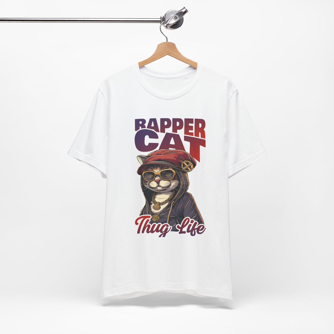 The Cool Cat Rapper Graphic T-Shirt is a fun and stylish unisex tee designed for cat lovers and fans of quirky fashion. Featuring a playful cat in sunglasses with a rap-inspired vibe, this lightweight jersey short sleeve shirt adds humor and personality to any outfit. Perfect for casual outings, social gatherings, or lounging at home, it’s a versatile choice for everyday wear. A great gift for birthdays, holidays, or anyone who loves cool animal-themed fashion.
