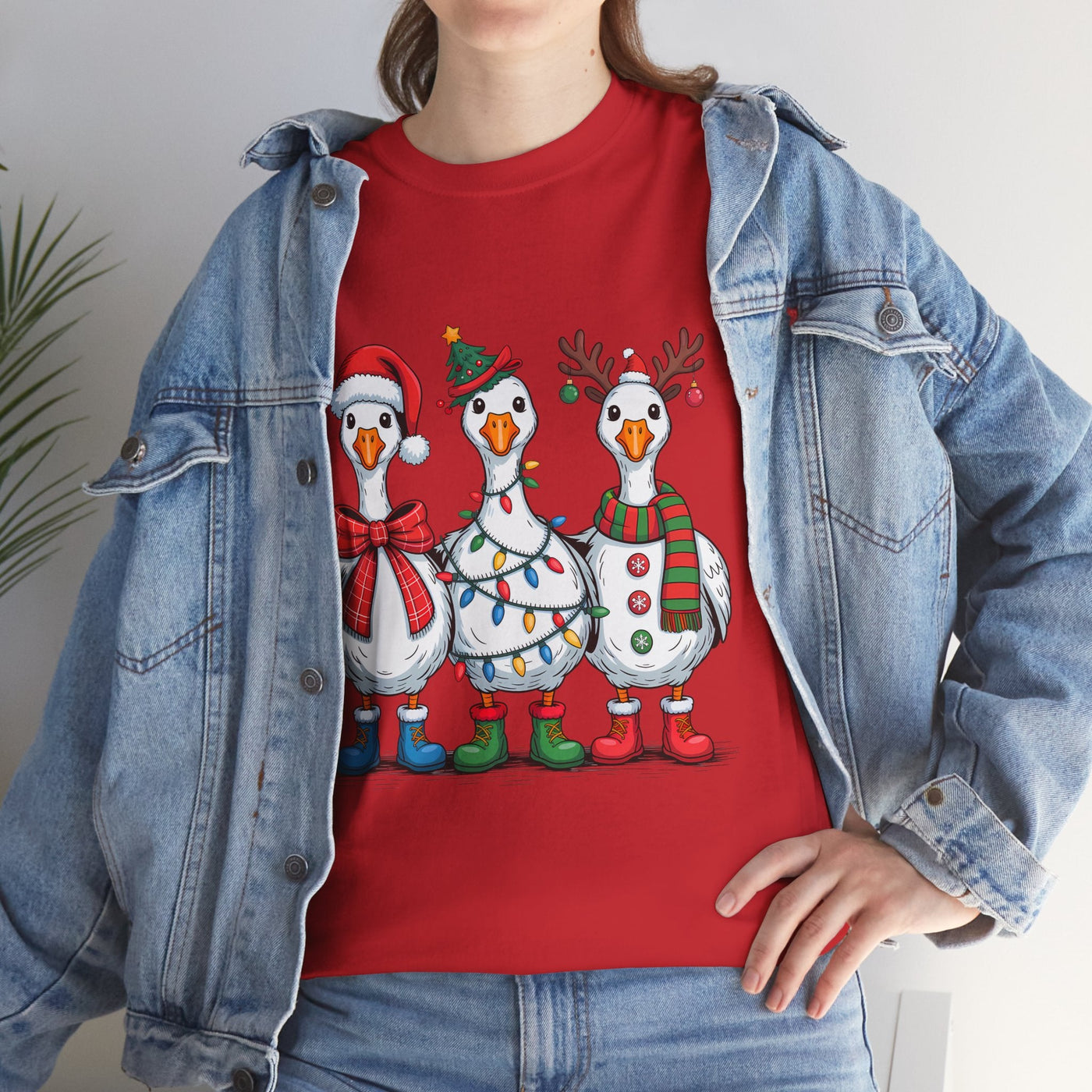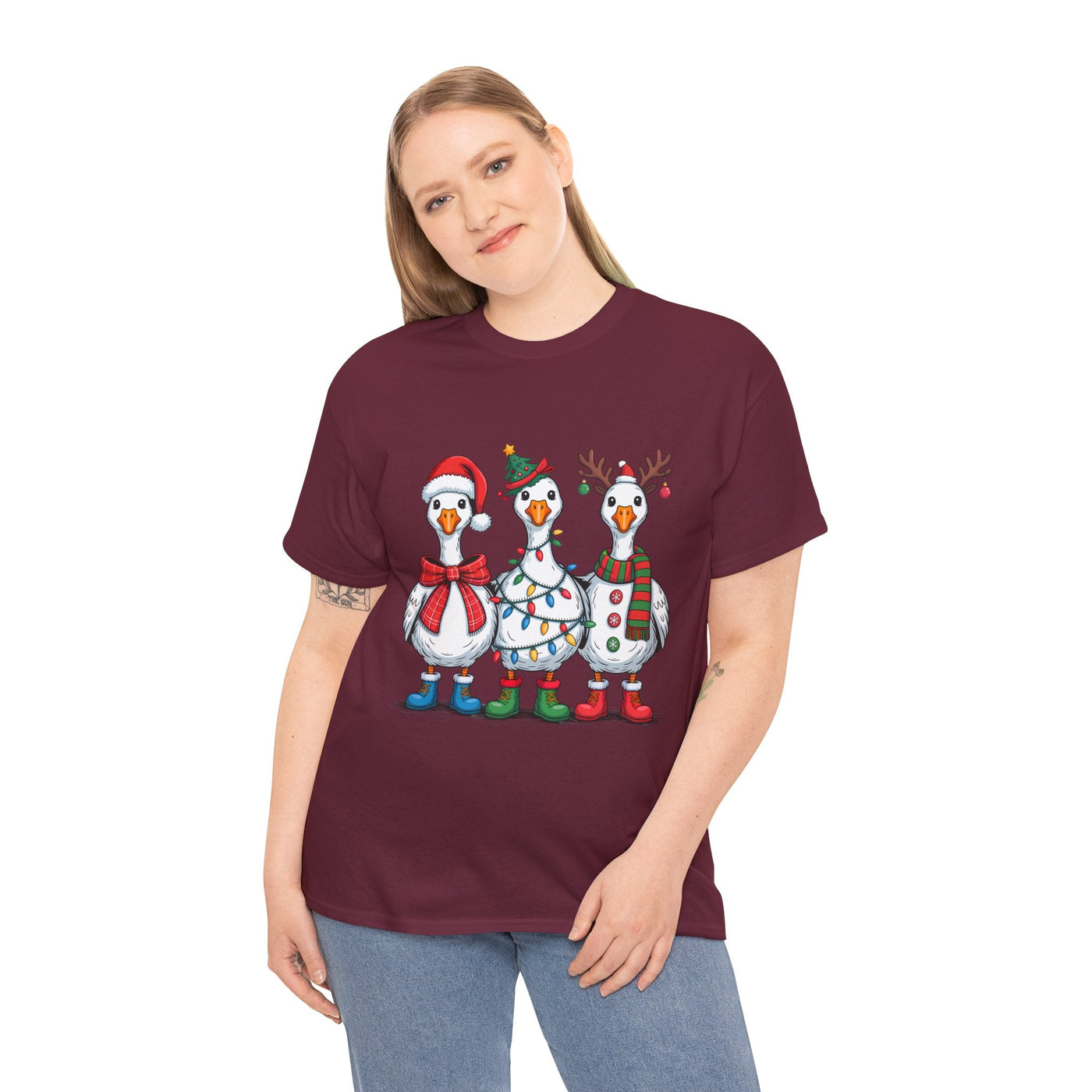 Bring festive cheer to your wardrobe with the Cute Christmas Goose T-Shirt! Featuring playful holiday-themed geese, this cozy unisex tee is perfect for Christmas parties, winter gatherings, or casual lounging.