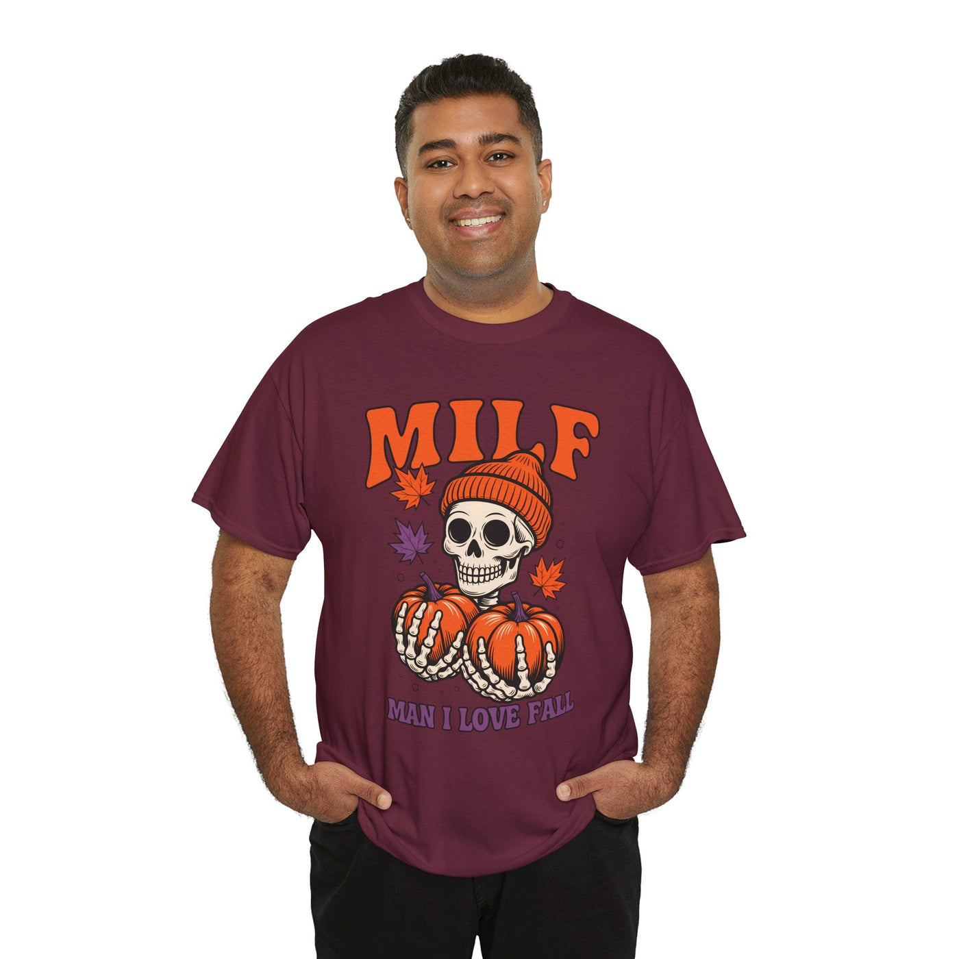 Celebrate your love for fall with this cozy and humorous Unisex Heavy Cotton Tee! Featuring a playful “MILF: Man I Love Fall” design with skull and pumpkin details, it perfectly captures the spirit of autumn. Whether you’re pumpkin picking, enjoying bonfires, or attending Thanksgiving gatherings, this tee adds charm and laughter to your seasonal style. Soft, comfortable, and effortlessly stylish — it’s a must-have for all fall lovers!