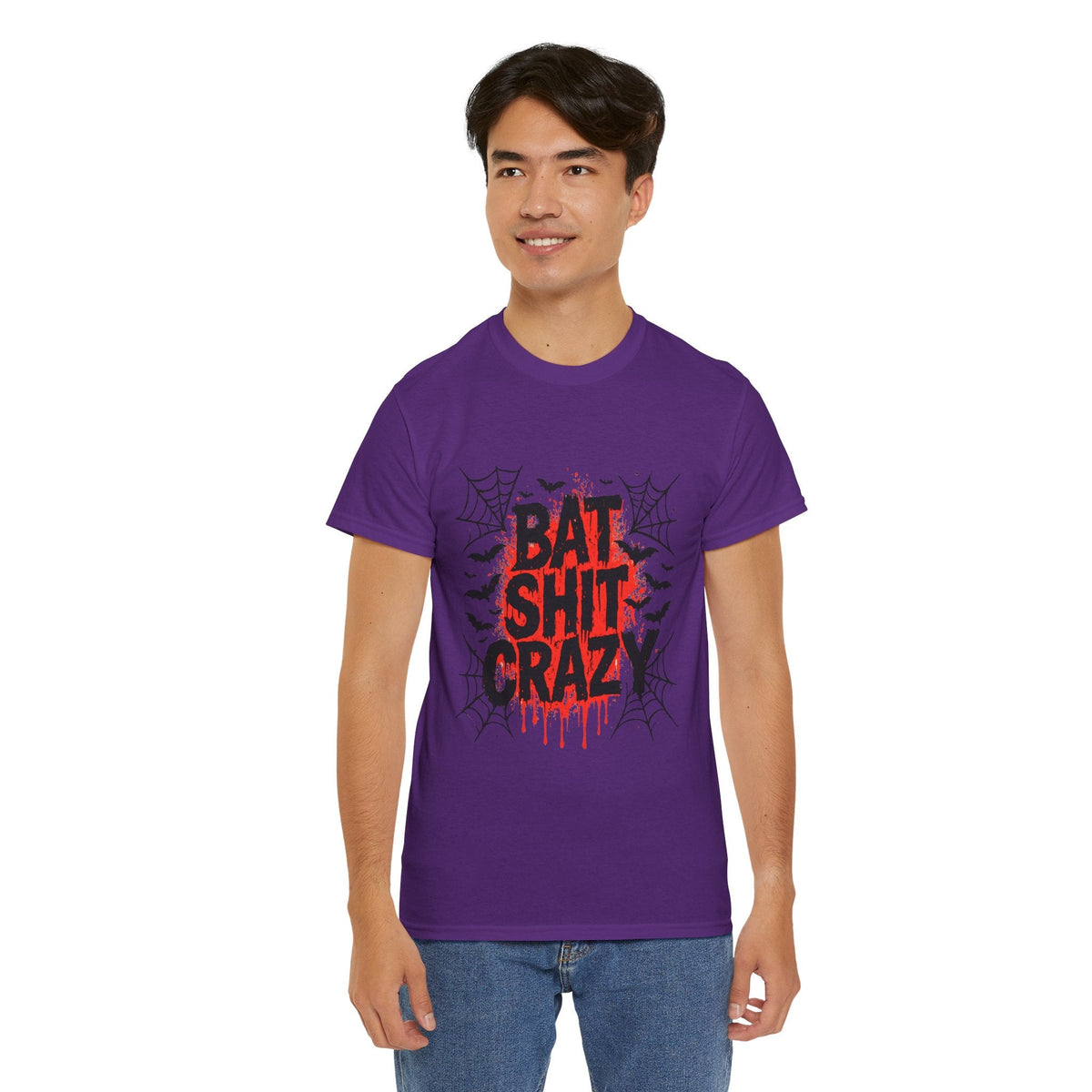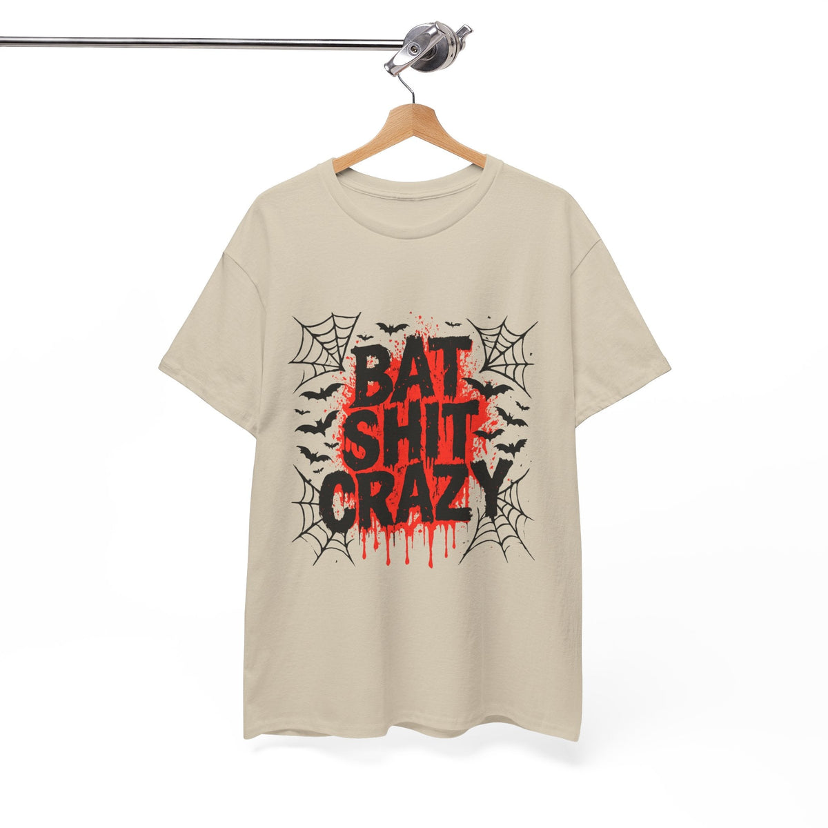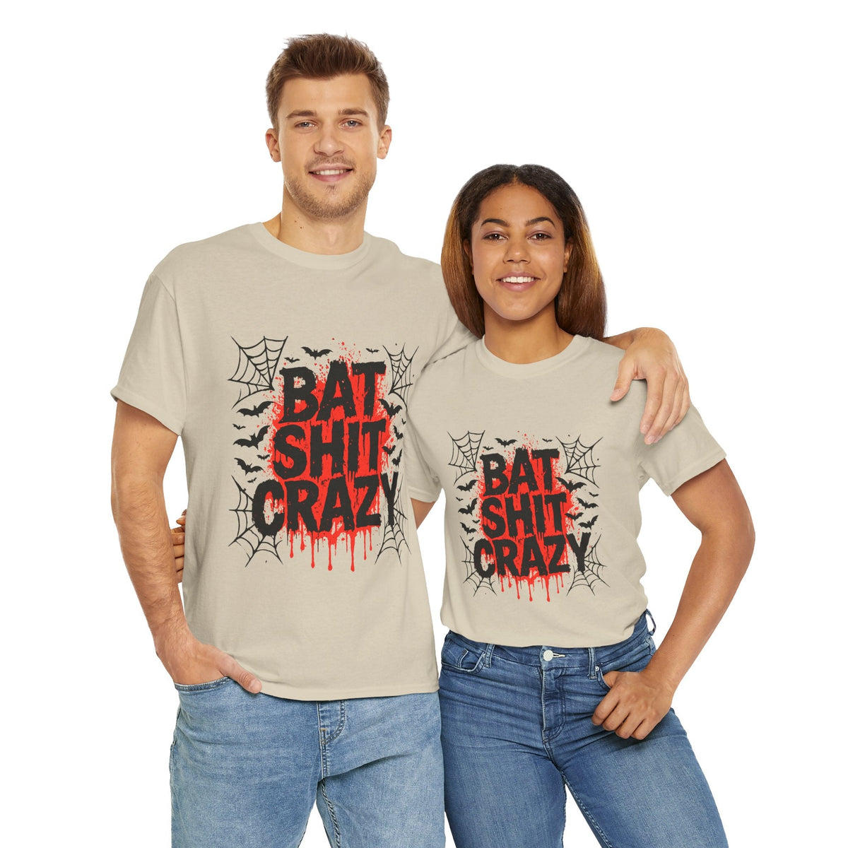 Unleash your fun side with this Unisex Heavy Cotton Tee featuring the bold “BAT SHIT CRAZY” slogan. Designed for comfort and style, this tee radiates playful energy while doubling as a conversation starter. Perfect for Halloween parties, casual outings, or simply expressing your quirky personality, it blends humor with everyday wearability. A great gift for friends, family, or anyone who enjoys standing out with a touch of humor and spookiness.