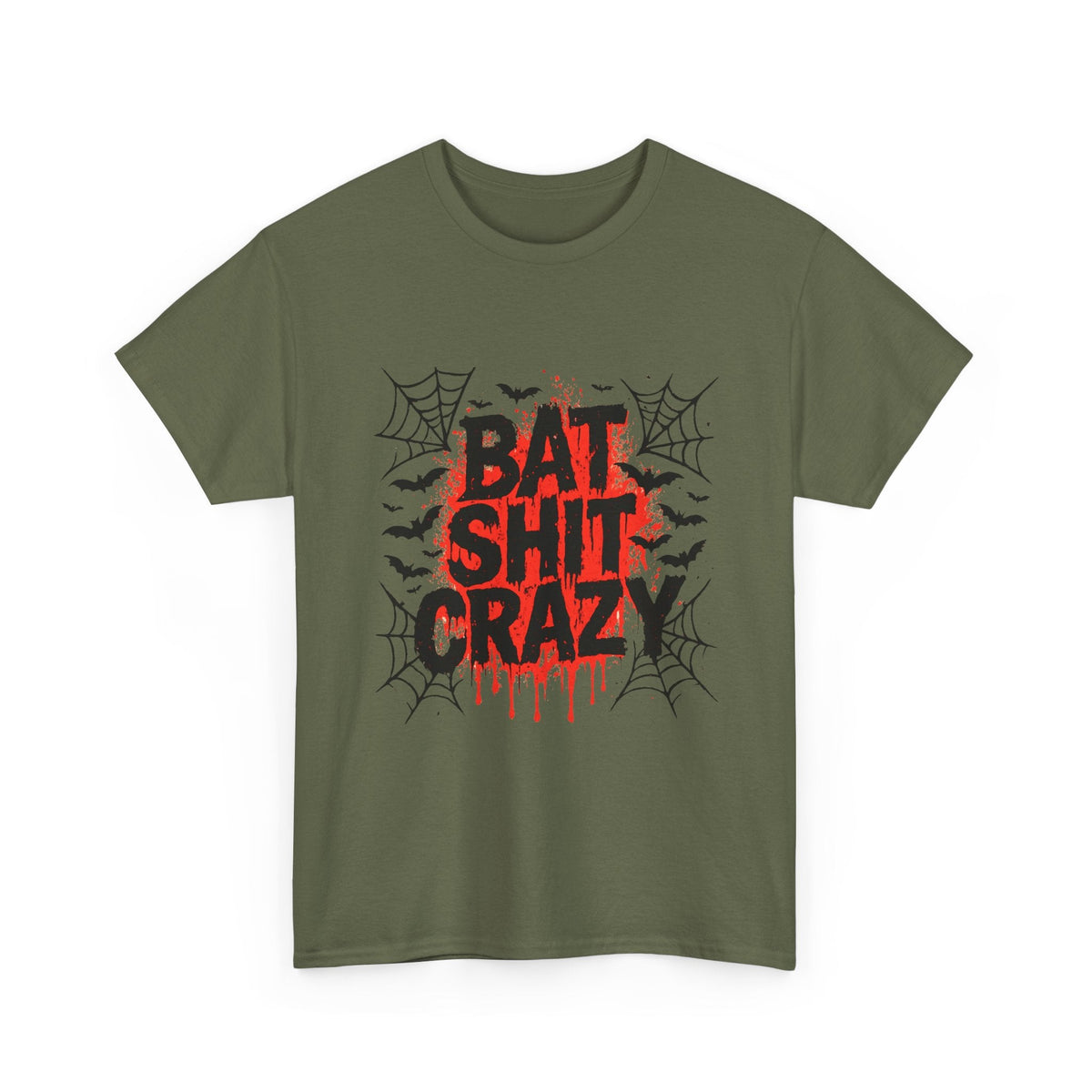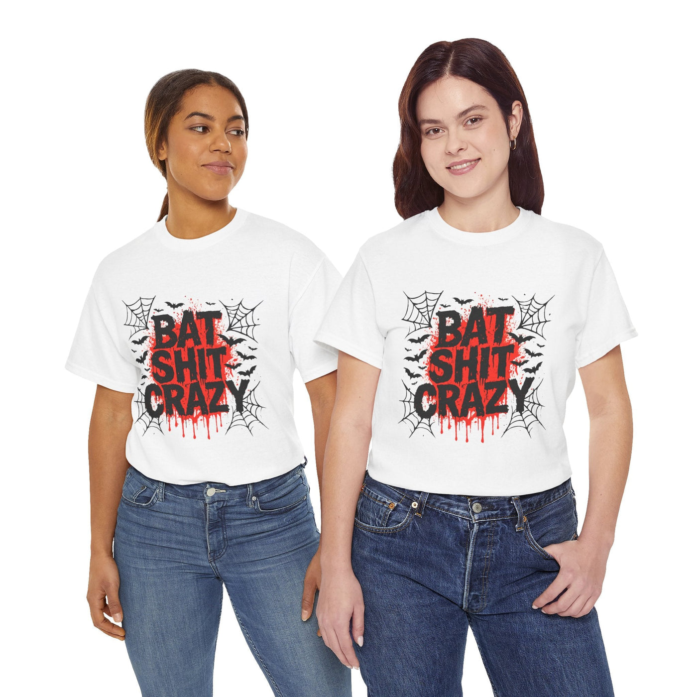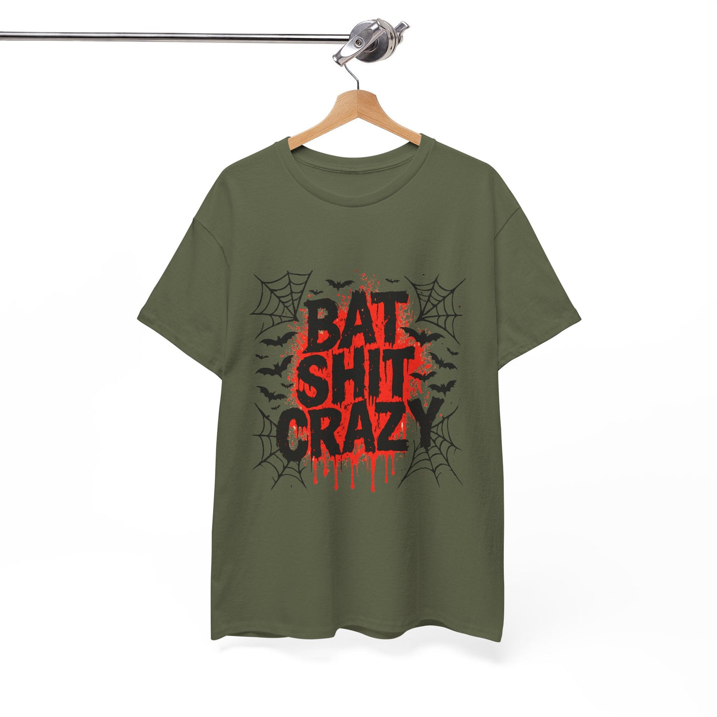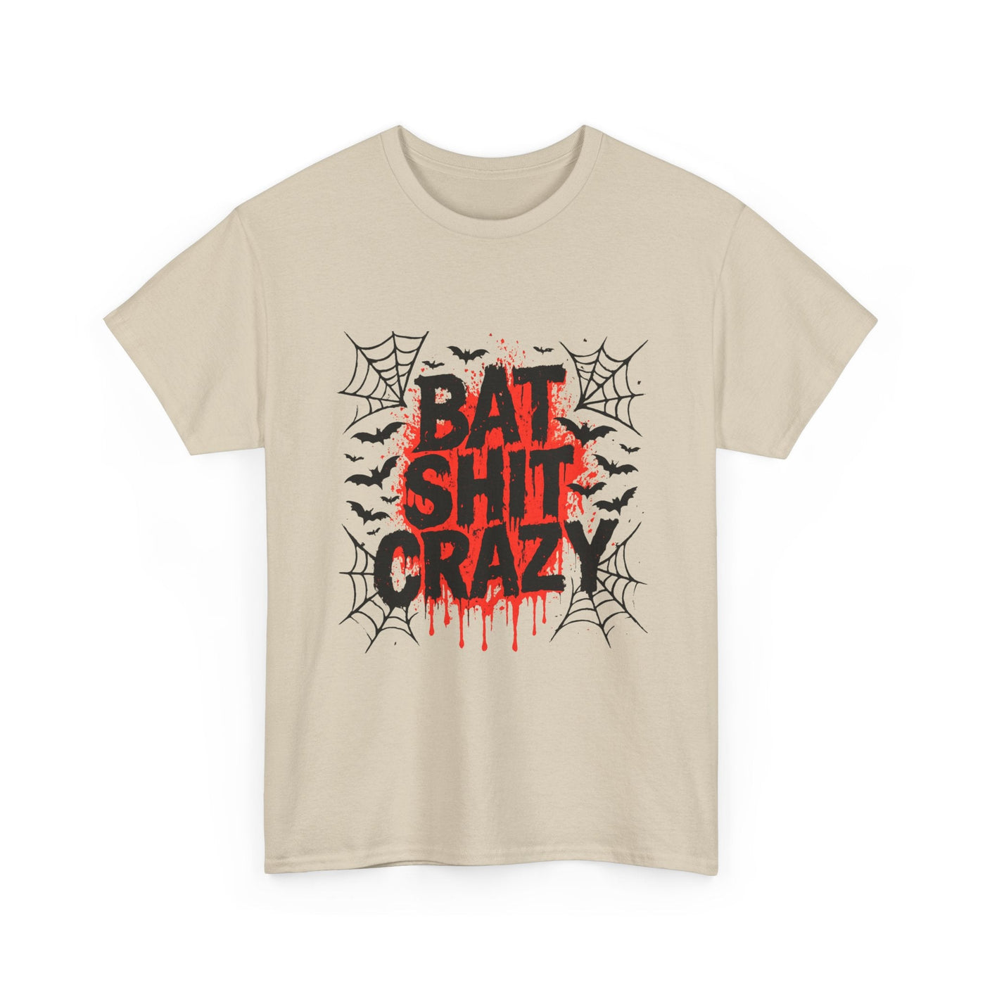 Unleash your fun side with this Unisex Heavy Cotton Tee featuring the bold “BAT SHIT CRAZY” slogan. Designed for comfort and style, this tee radiates playful energy while doubling as a conversation starter. Perfect for Halloween parties, casual outings, or simply expressing your quirky personality, it blends humor with everyday wearability. A great gift for friends, family, or anyone who enjoys standing out with a touch of humor and spookiness.