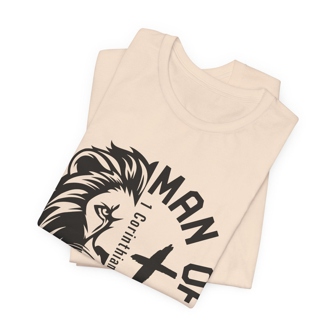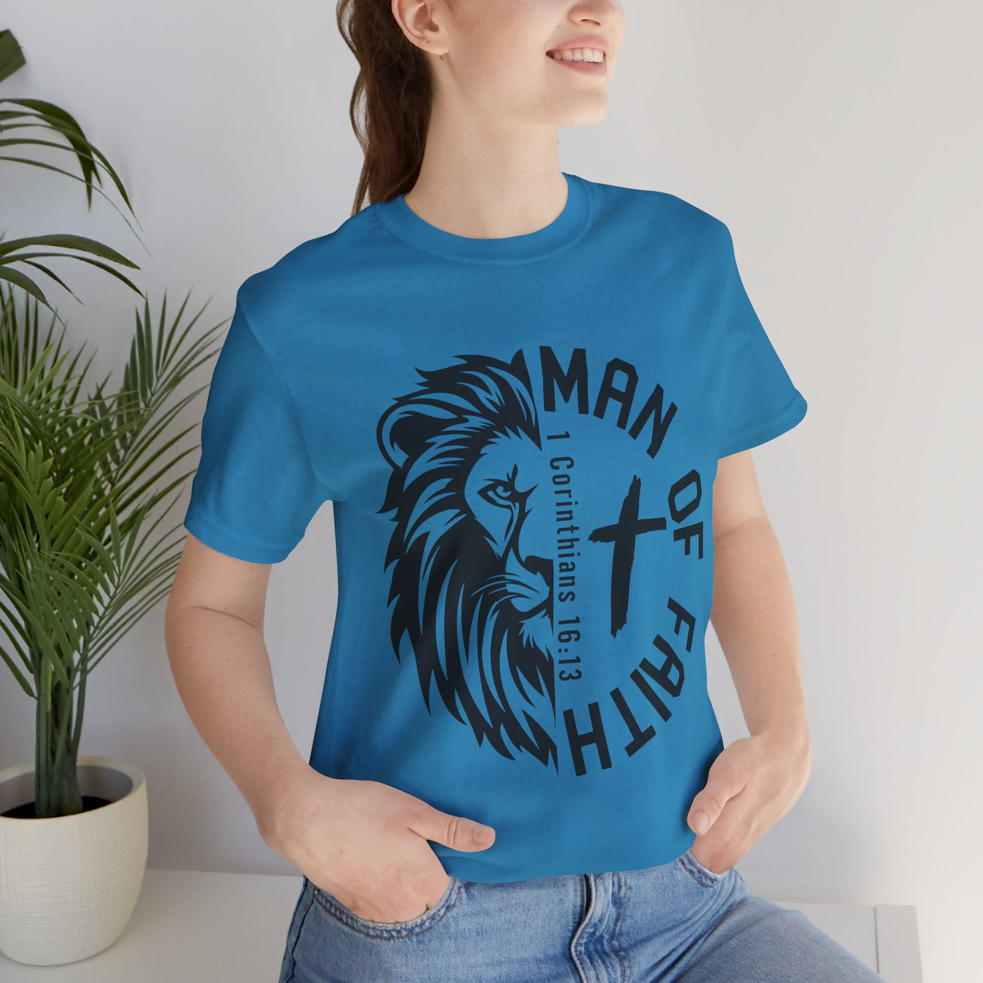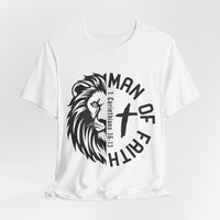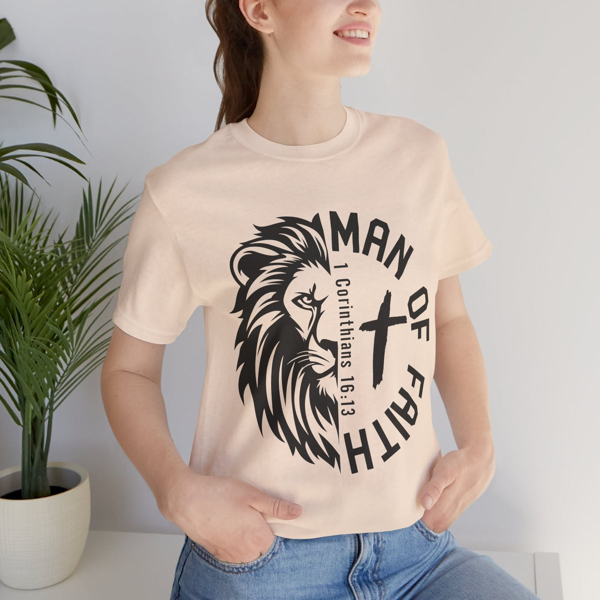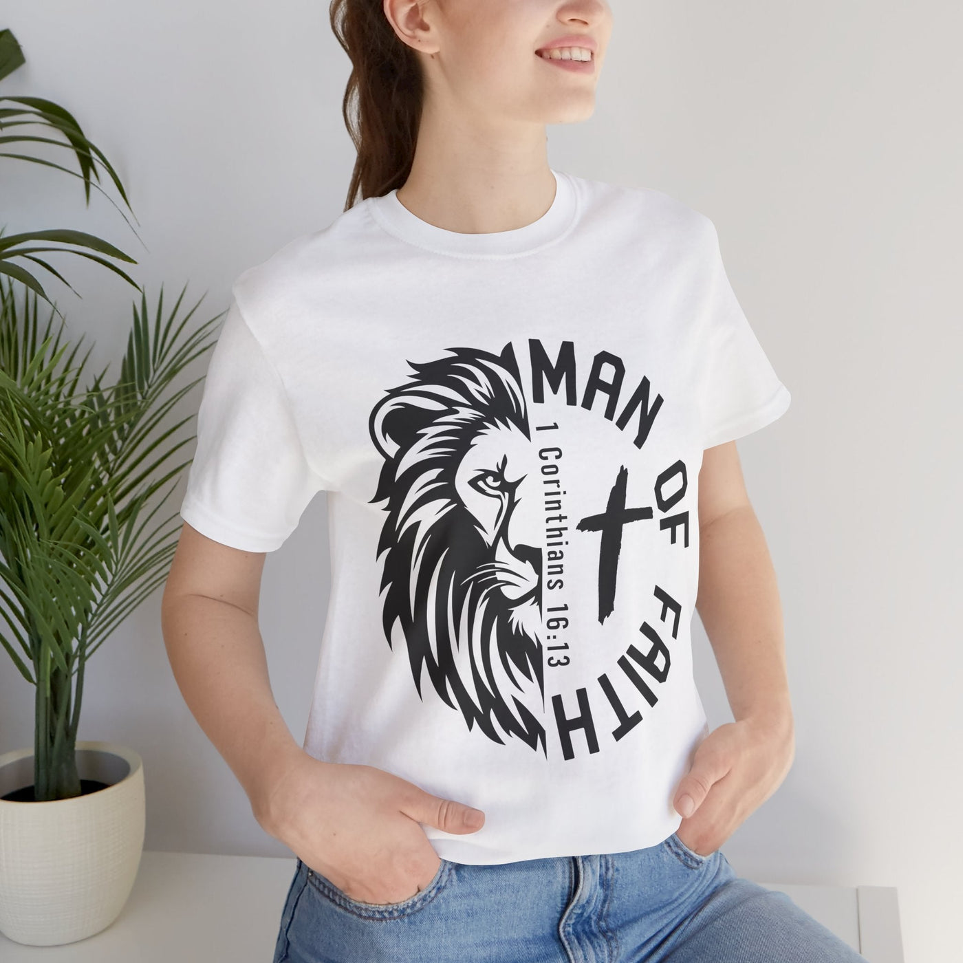 The Man of Faith Lion Graphic T-Shirt is a unisex jersey short sleeve tee made from 100% Airlume combed and ring-spun cotton for lightweight comfort and breathability. Featuring a bold lion graphic with a faith-inspired design, this Christian t-shirt is perfect for expressing spirituality and strength. Ideal for casual wear, church events, religious gatherings, or as a meaningful gift for believers, it combines style with inspiration. A versatile faith-based graphic tee, it’s a must-have for anyone who wants to showcase their values with confidence.