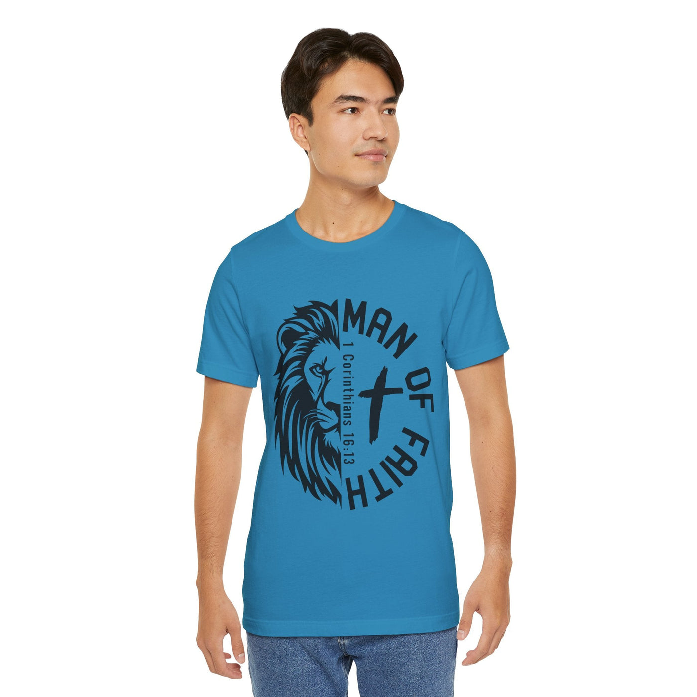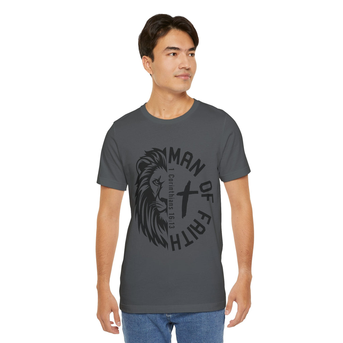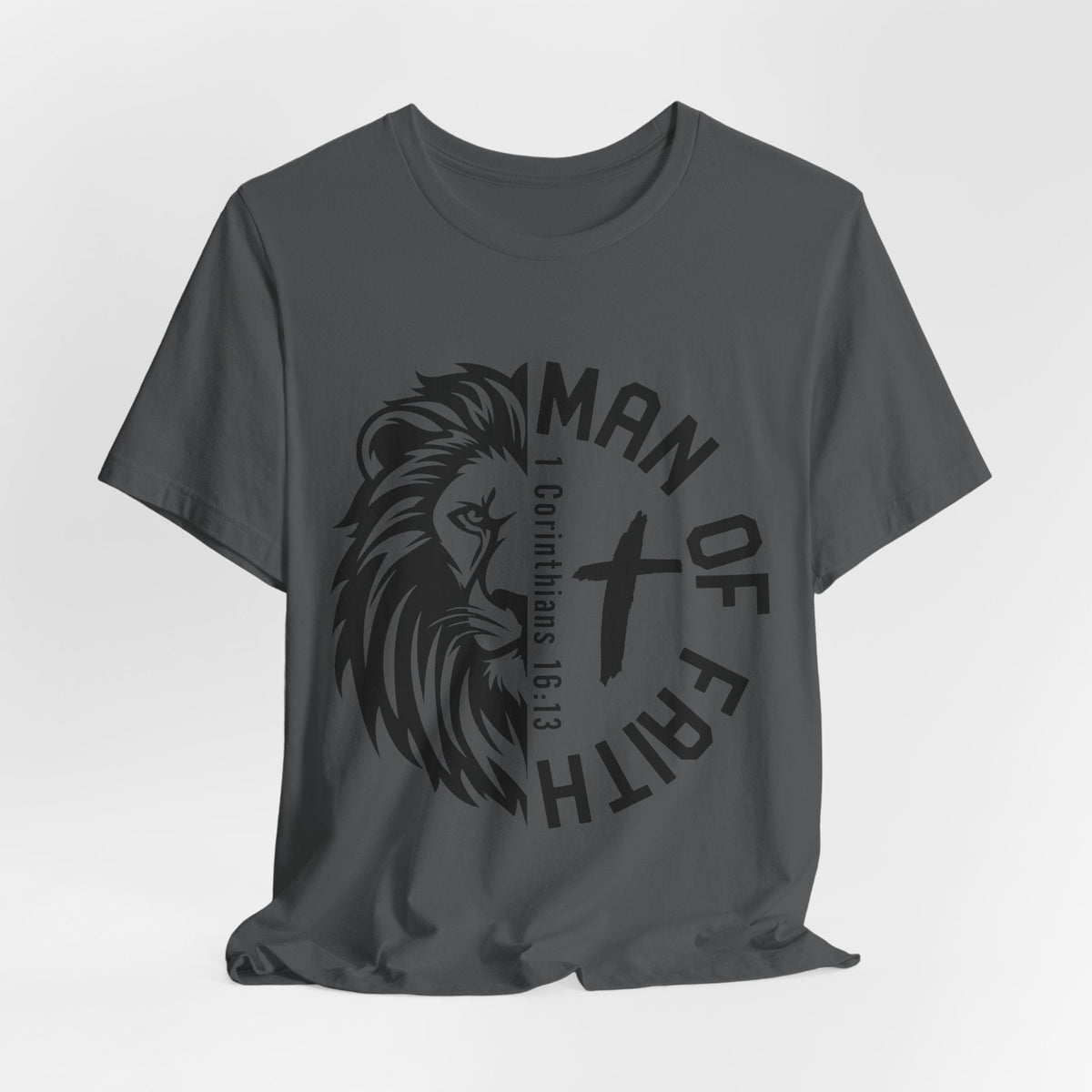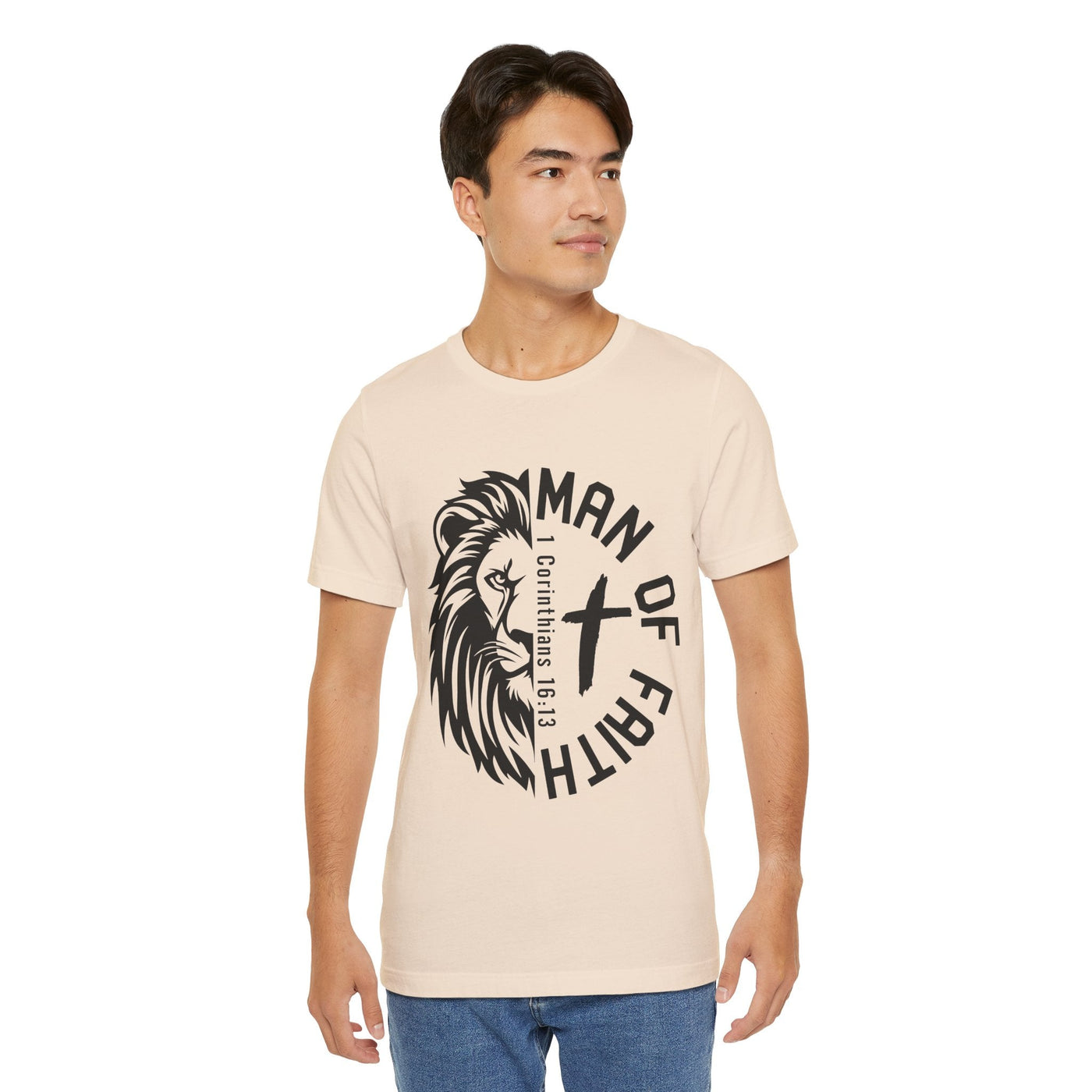 The Man of Faith Lion Graphic T-Shirt is a unisex jersey short sleeve tee made from 100% Airlume combed and ring-spun cotton for lightweight comfort and breathability. Featuring a bold lion graphic with a faith-inspired design, this Christian t-shirt is perfect for expressing spirituality and strength. Ideal for casual wear, church events, religious gatherings, or as a meaningful gift for believers, it combines style with inspiration. A versatile faith-based graphic tee, it’s a must-have for anyone who wants to showcase their values with confidence.