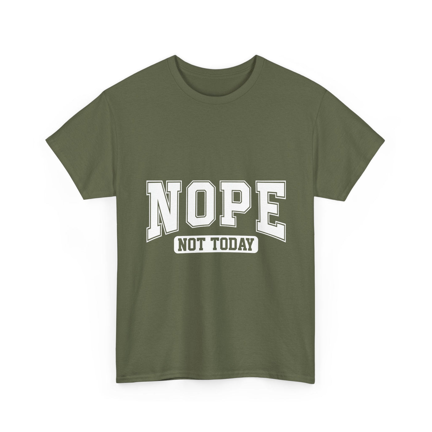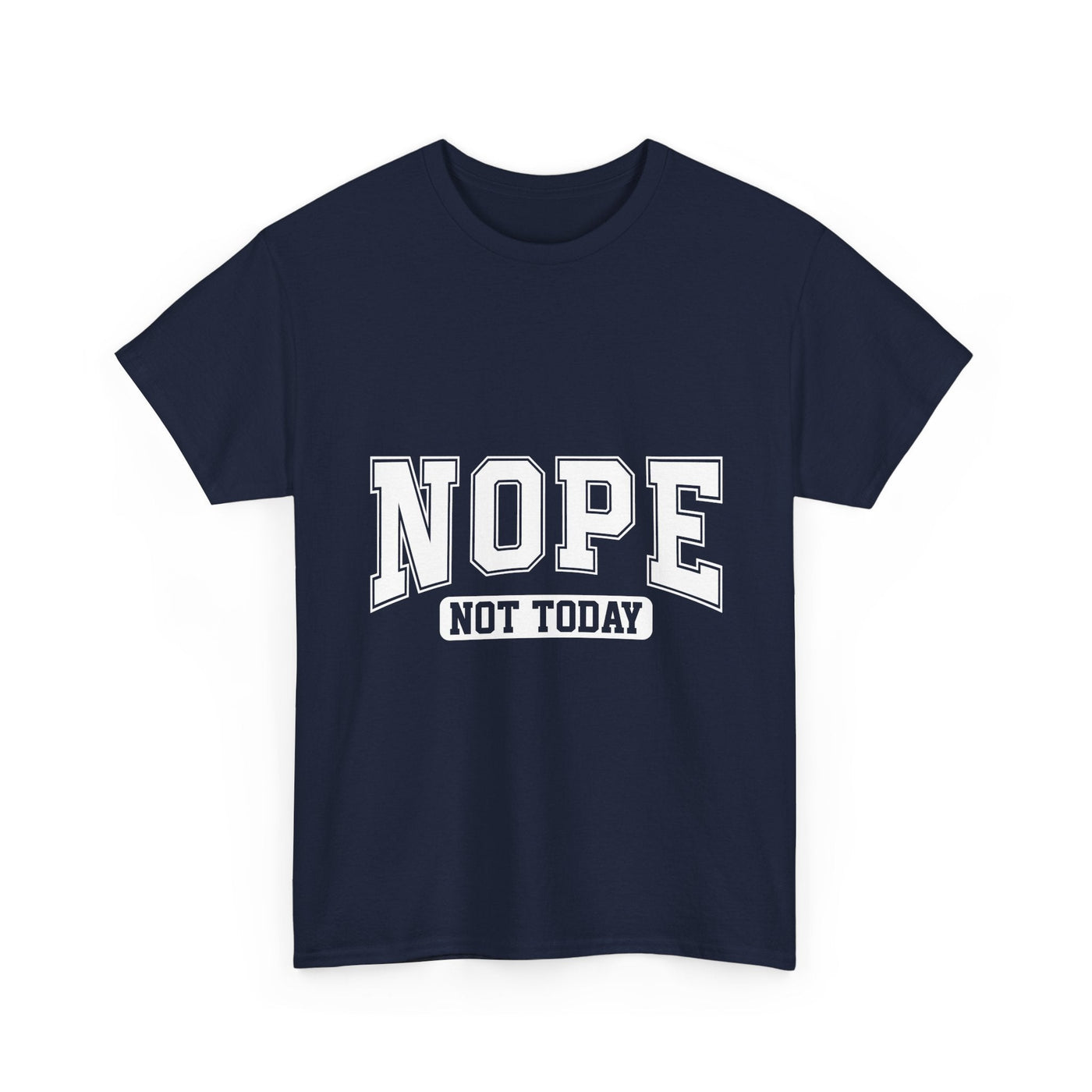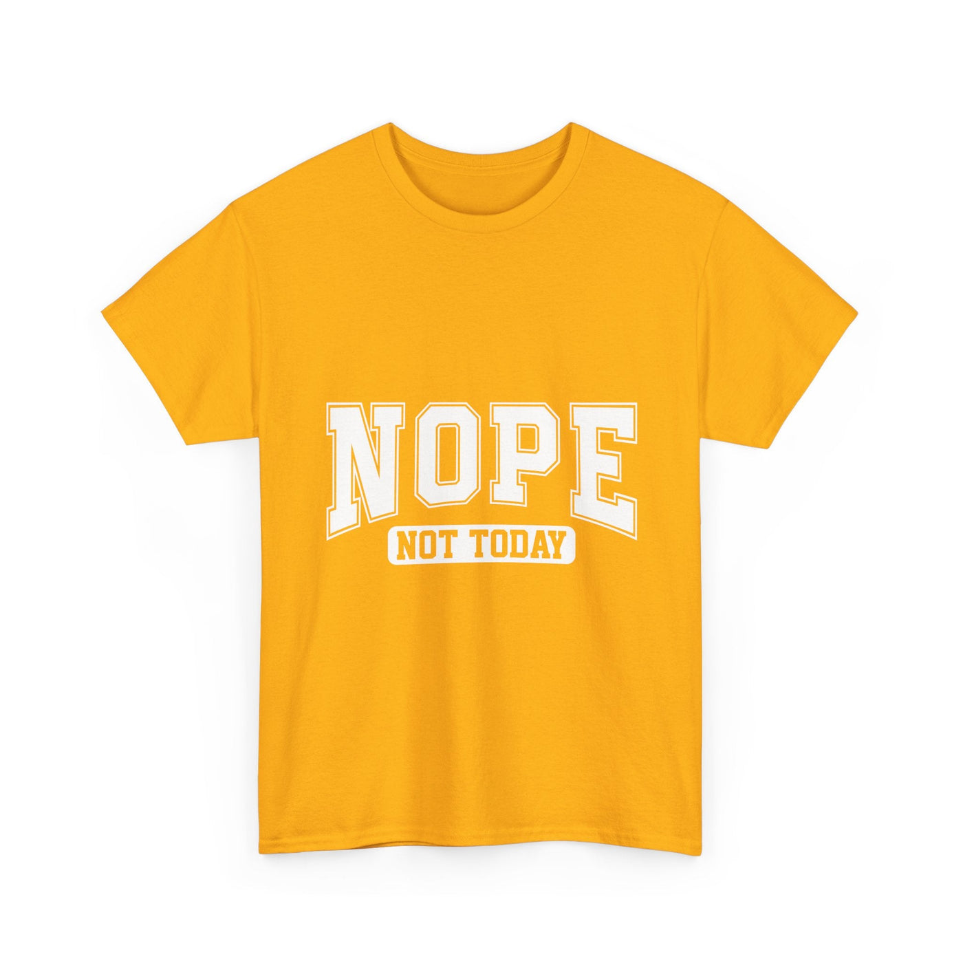 Show off your humor with the NOPE Not Today Funny Graphic Unisex Heavy Cotton T-Shirt. Designed for comfort and style, this soft, durable tee features a witty graphic perfect for casual outings, lounging, or gifting. Its classic fit and breathable fabric make it ideal for everyday wear. A fun, relatable shirt for anyone who loves humor and effortless fashion!