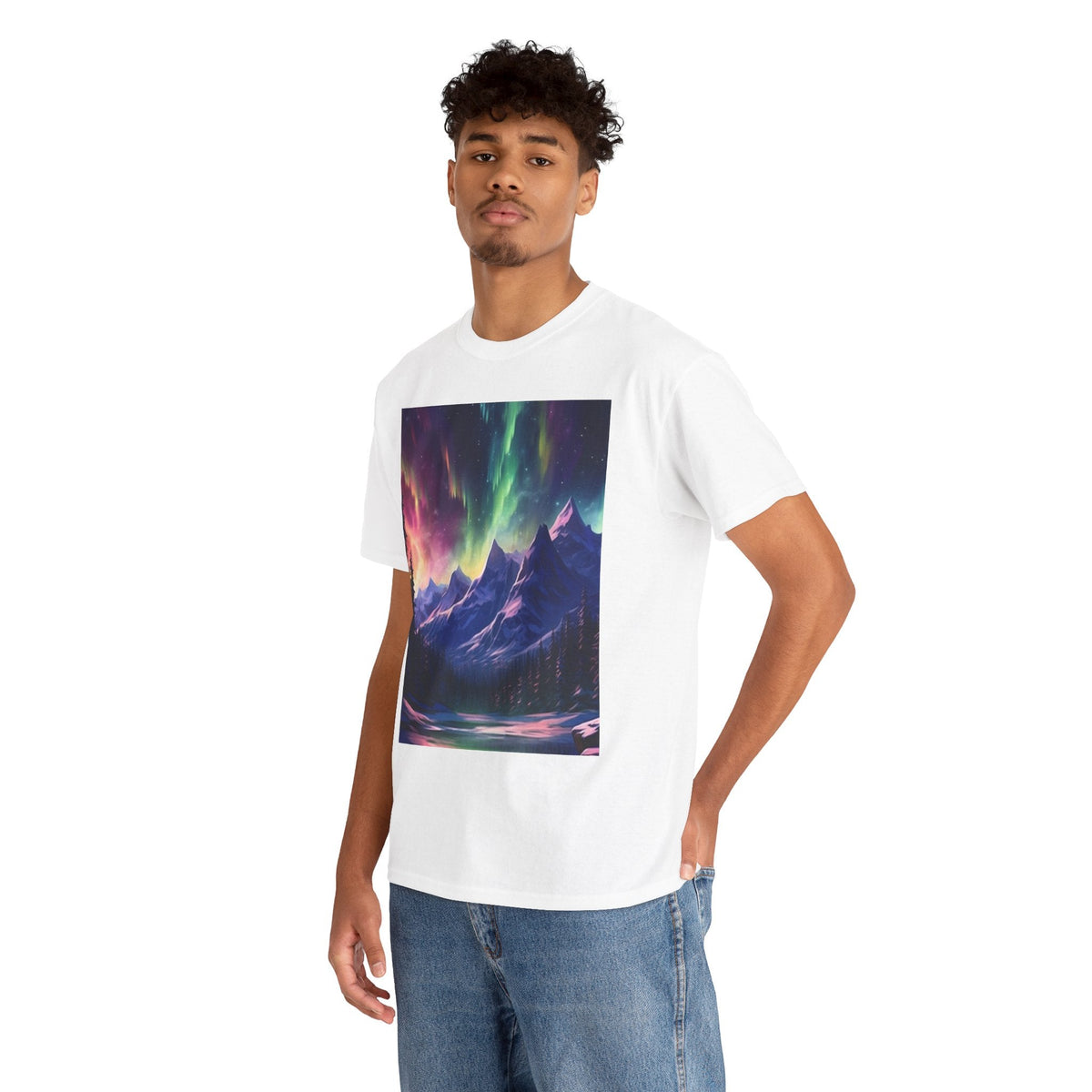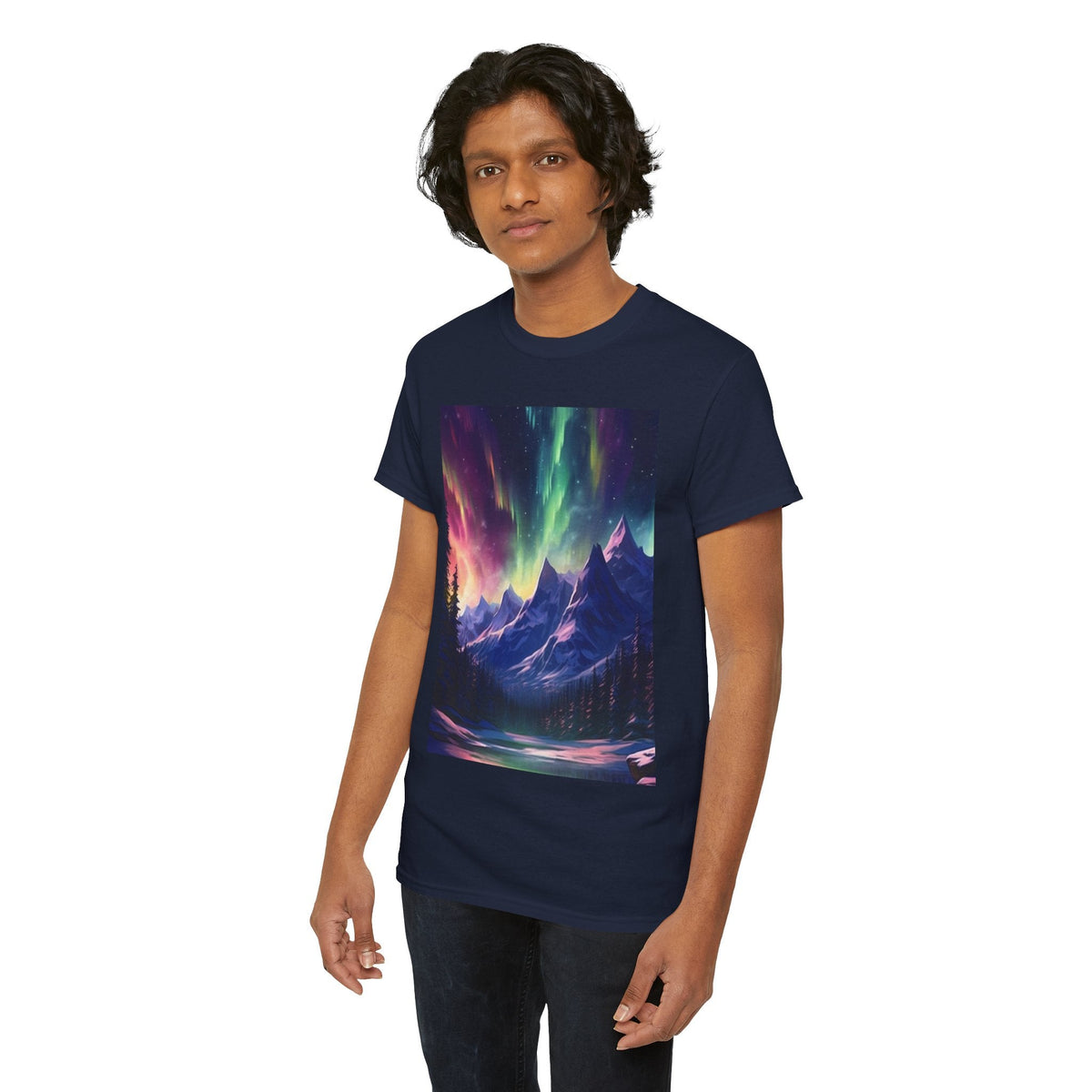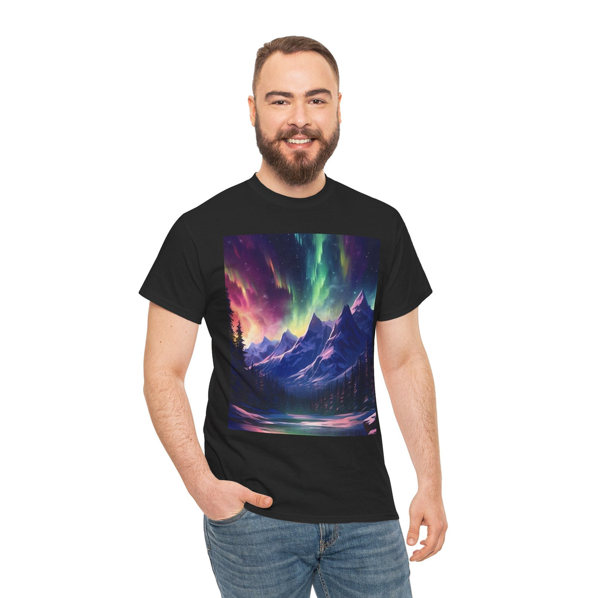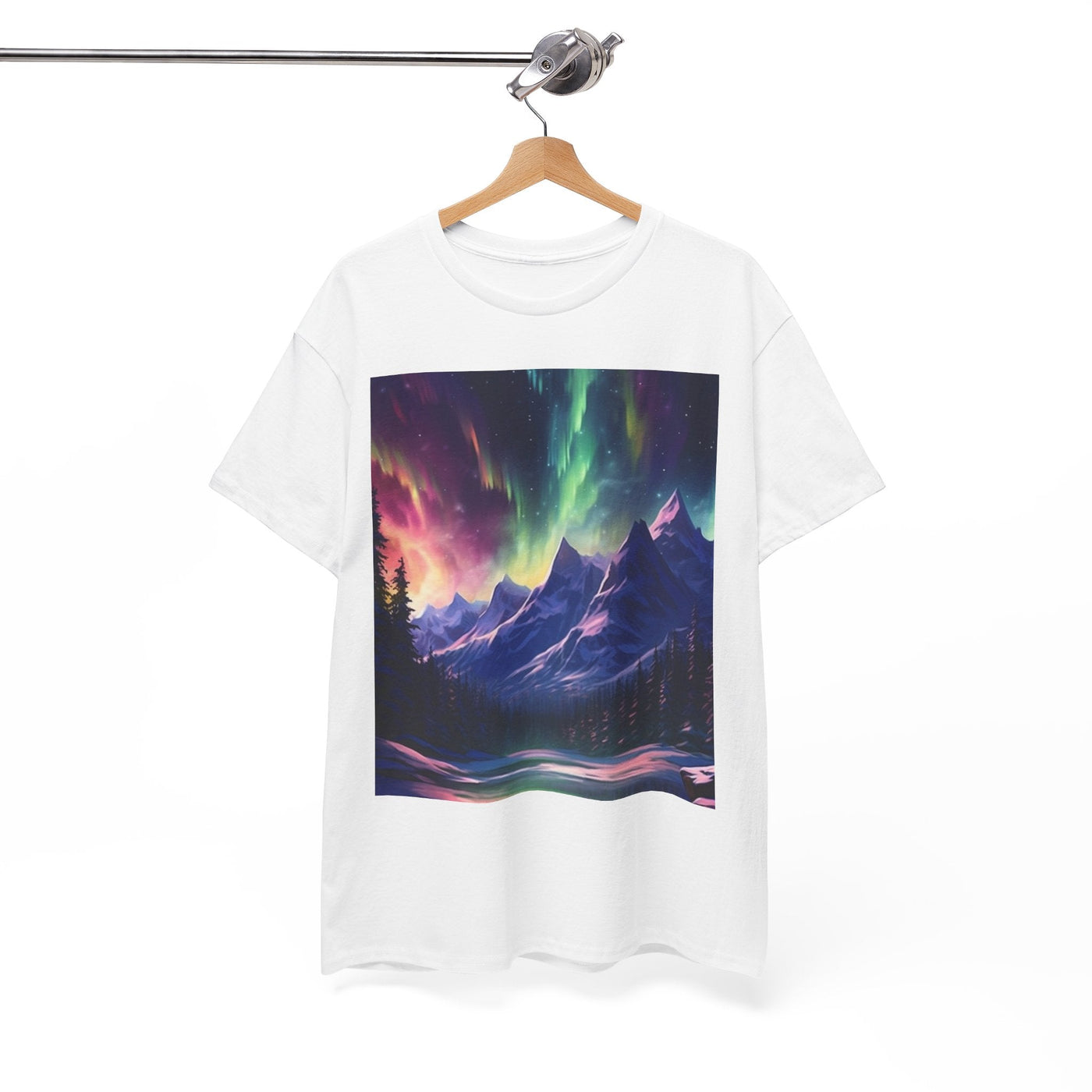 Celebrate the beauty of nature with the Northern Lights Graphic T-Shirt. Featuring a breathtaking mountain and aurora design, this tee is perfect for adventure lovers, stargazers, and anyone who appreciates the magic of the outdoors.