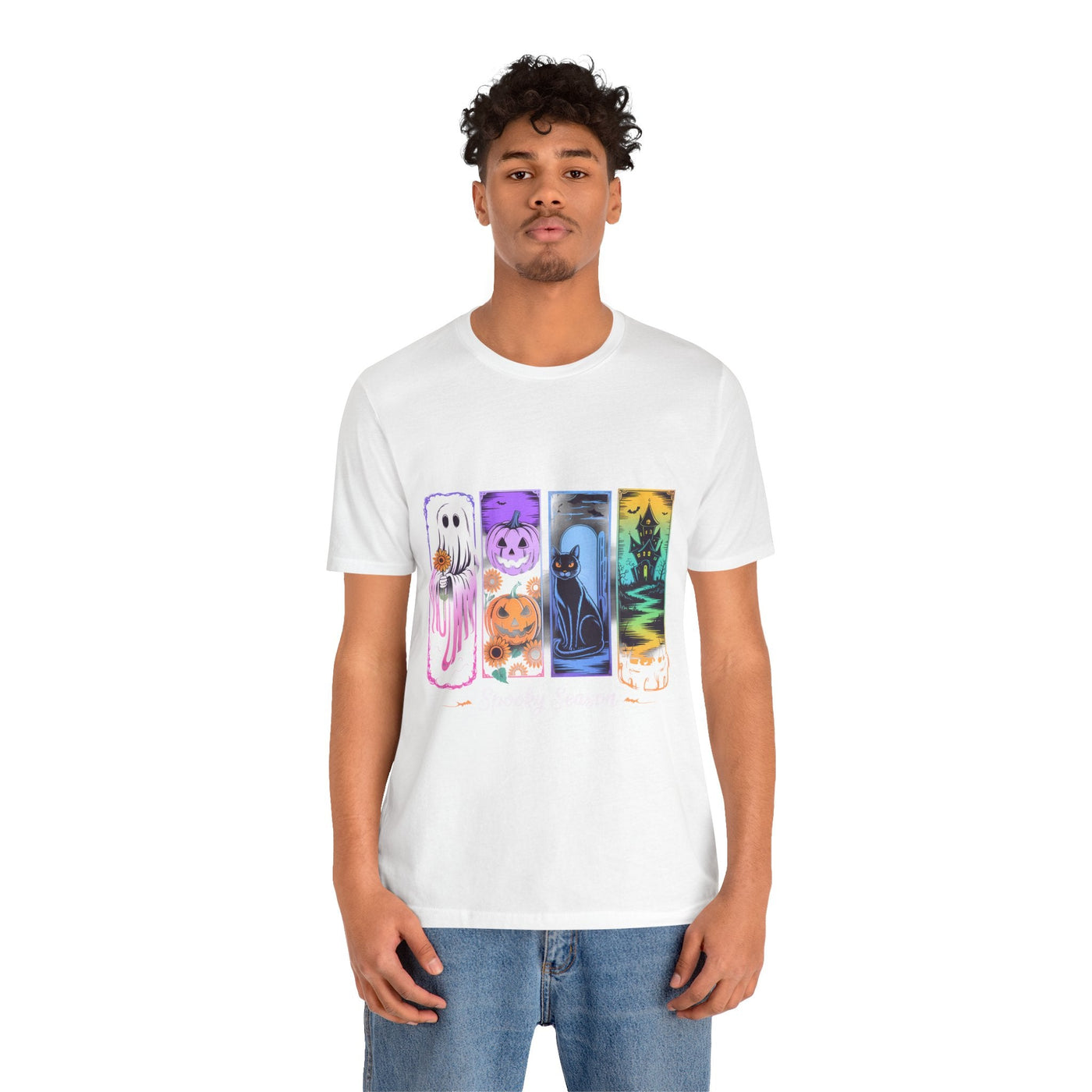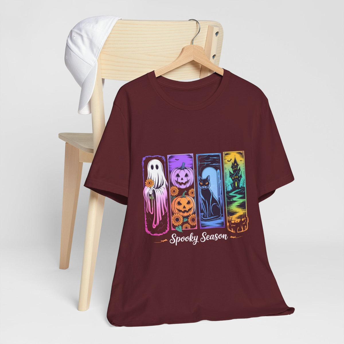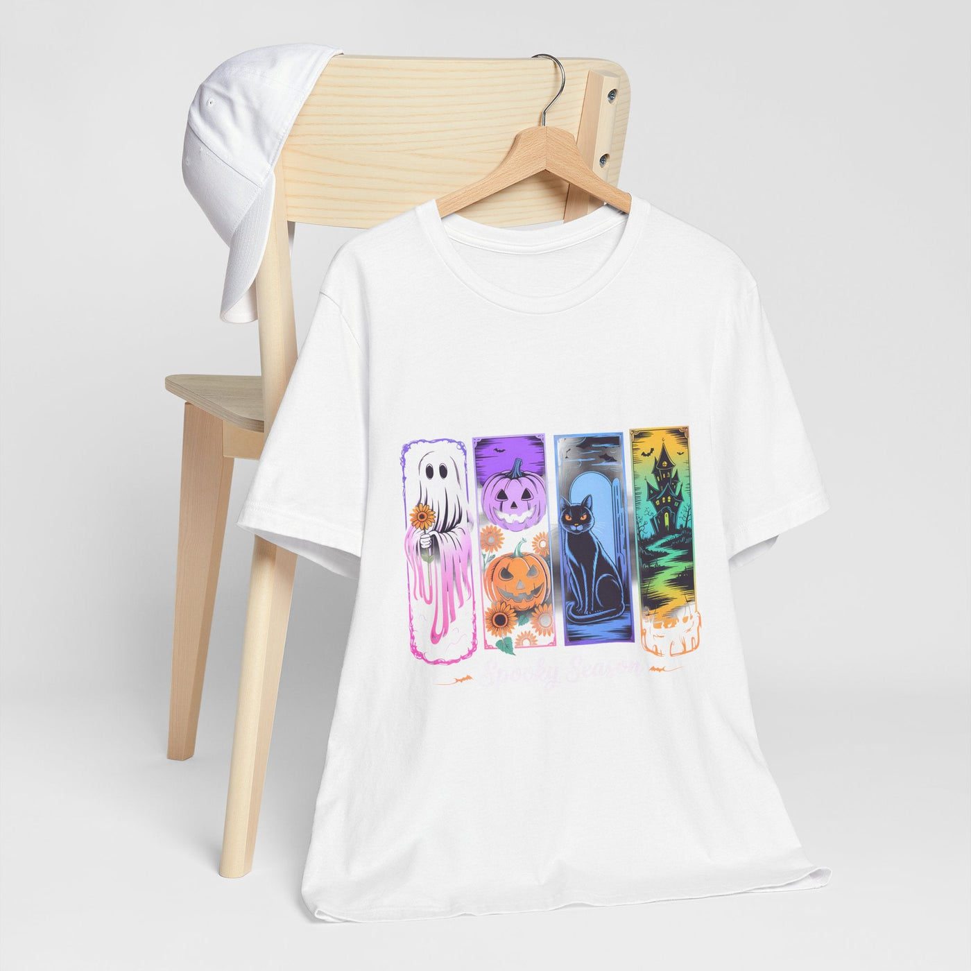 The Spooky Season Halloween T-Shirt is a fun and festive unisex tee that perfectly captures the spirit of Halloween with vibrant, playful graphics. Made from soft, breathable fabric, this jersey short sleeve shirt offers comfort and style for parties, casual outings, or cozy nights in. Ideal for art lovers, trendsetters, and Halloween enthusiasts, it adds a whimsical touch to any wardrobe. A versatile and stylish choice, this tee is perfect for celebrating spooky vibes all season long.