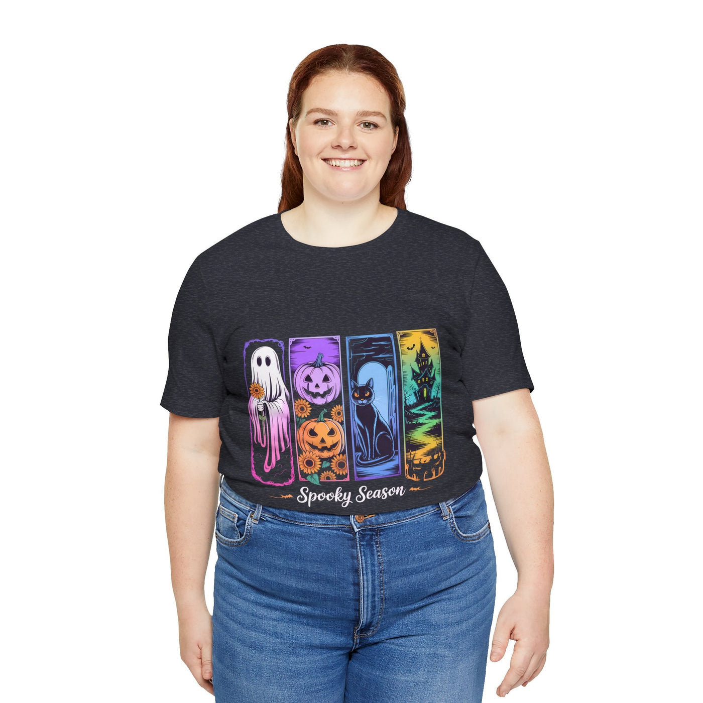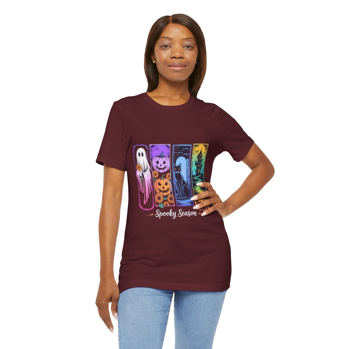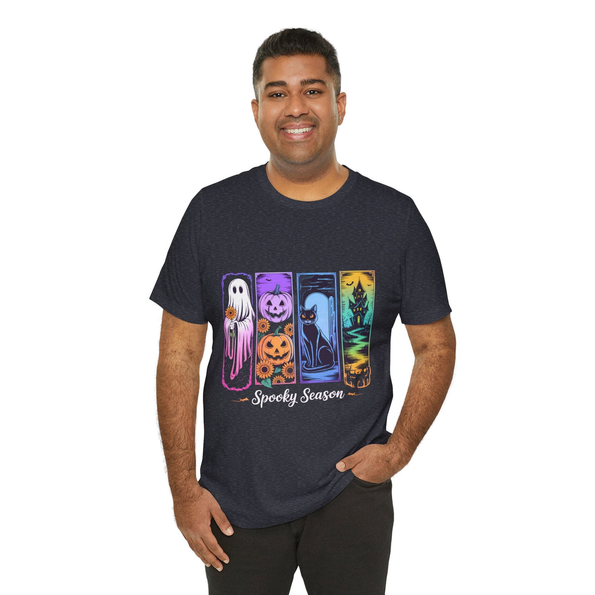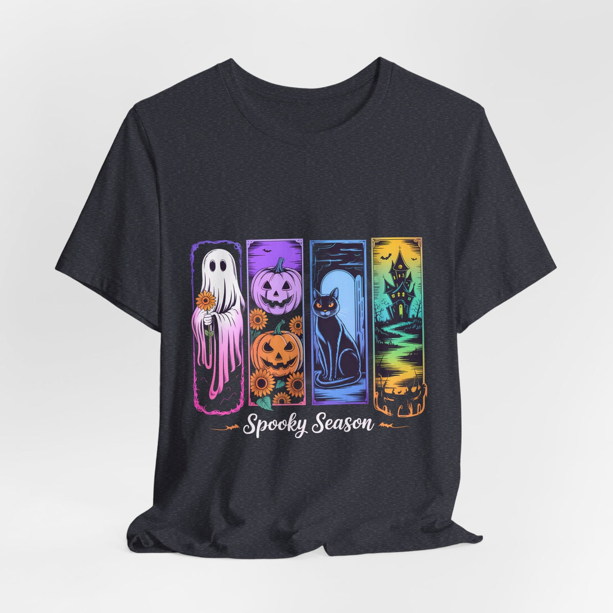 The Spooky Season Halloween T-Shirt is a fun and festive unisex tee that perfectly captures the spirit of Halloween with vibrant, playful graphics. Made from soft, breathable fabric, this jersey short sleeve shirt offers comfort and style for parties, casual outings, or cozy nights in. Ideal for art lovers, trendsetters, and Halloween enthusiasts, it adds a whimsical touch to any wardrobe. A versatile and stylish choice, this tee is perfect for celebrating spooky vibes all season long.