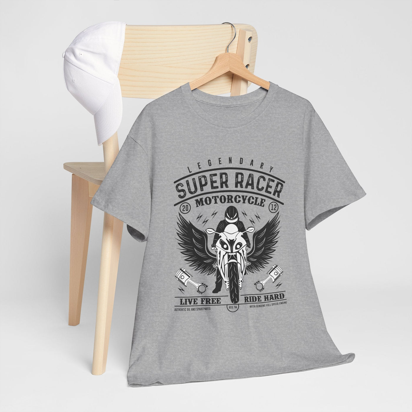 The Super Racer Motorcycle T-Shirt is a unisex heavy cotton tee that blends comfort, durability, and bold style. Featuring a cool racing-inspired design, this graphic tee is perfect for motorcycle enthusiasts, riders, and fans of edgy fashion. Ideal for bike rallies, motorbike events, casual outings, or lounging at home, it’s a versatile and stylish choice. A great gift for birthdays, celebrations, or anyone who loves the thrill of racing.