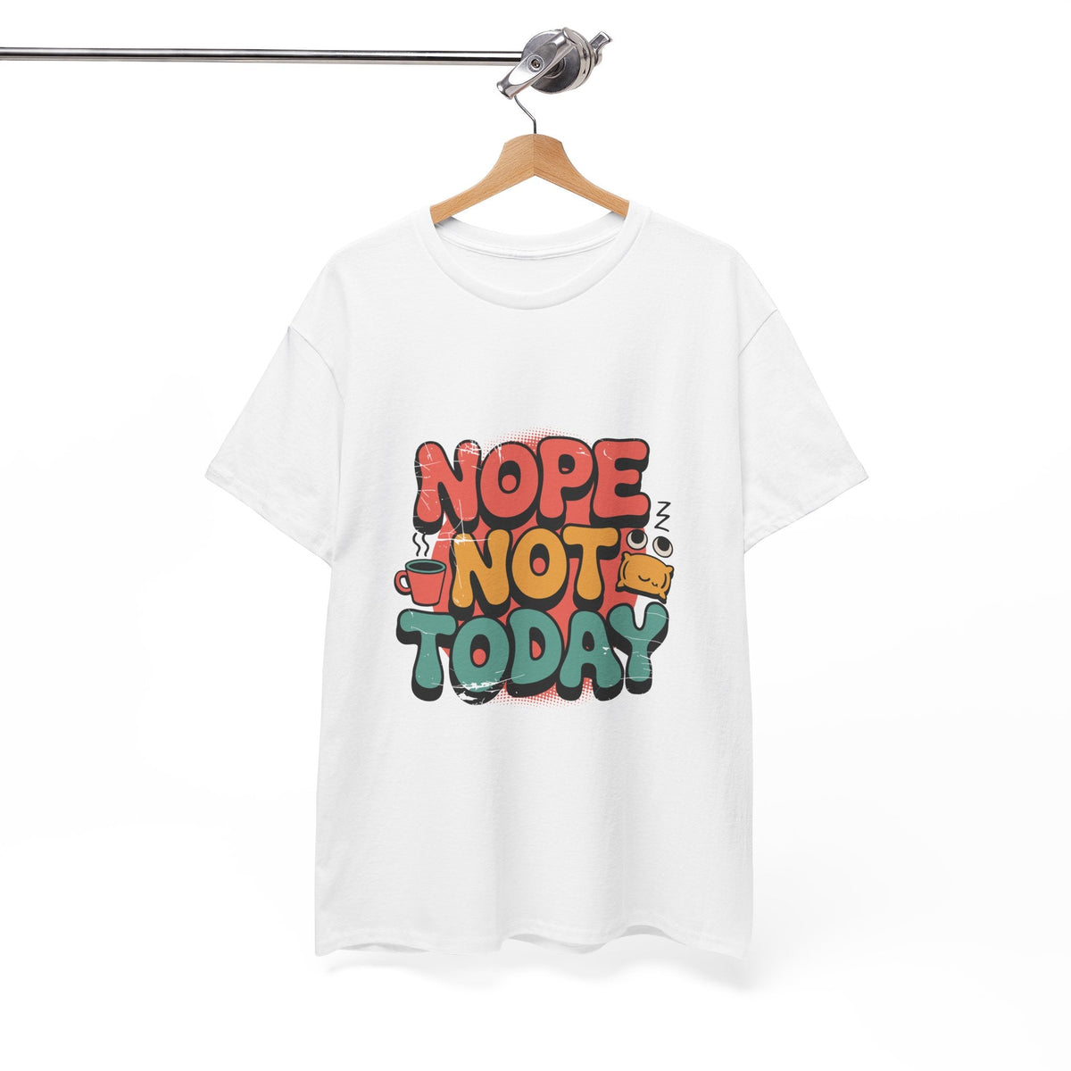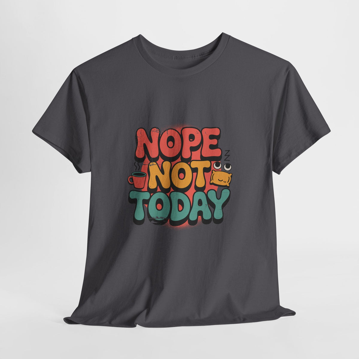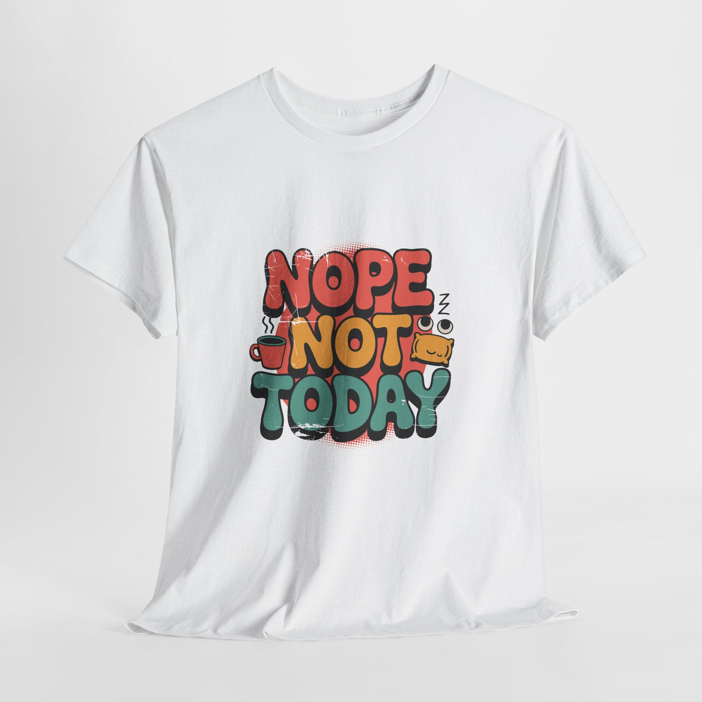 Bring effortless humor into your everyday style with this Unisex Heavy Cotton “Nope Not Today” Tee. The bold, hand-lettered graphic features warm, sun-washed tones with playful illustrated details — from a tiny coffee cup to sleepy Z’s — giving the message a friendly, relatable vibe. Crafted from soft, medium-weight cotton, this tee maintains its shape while offering comfortable daily wear.