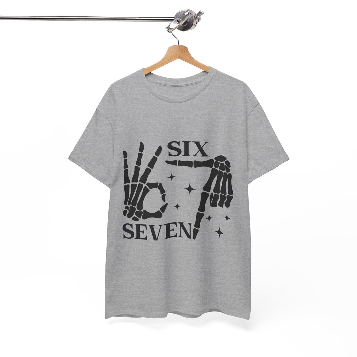 Add a playful twist to your casual style with the Skeleton Hands 6–7 Meme Unisex Heavy Cotton Tee. Perfect for meme lovers and trendsetters, this shirt blends humor with comfort for an effortlessly cool look. Its soft cotton fabric and relaxed fit make it ideal for everyday wear, Halloween parties, or casual hangouts.