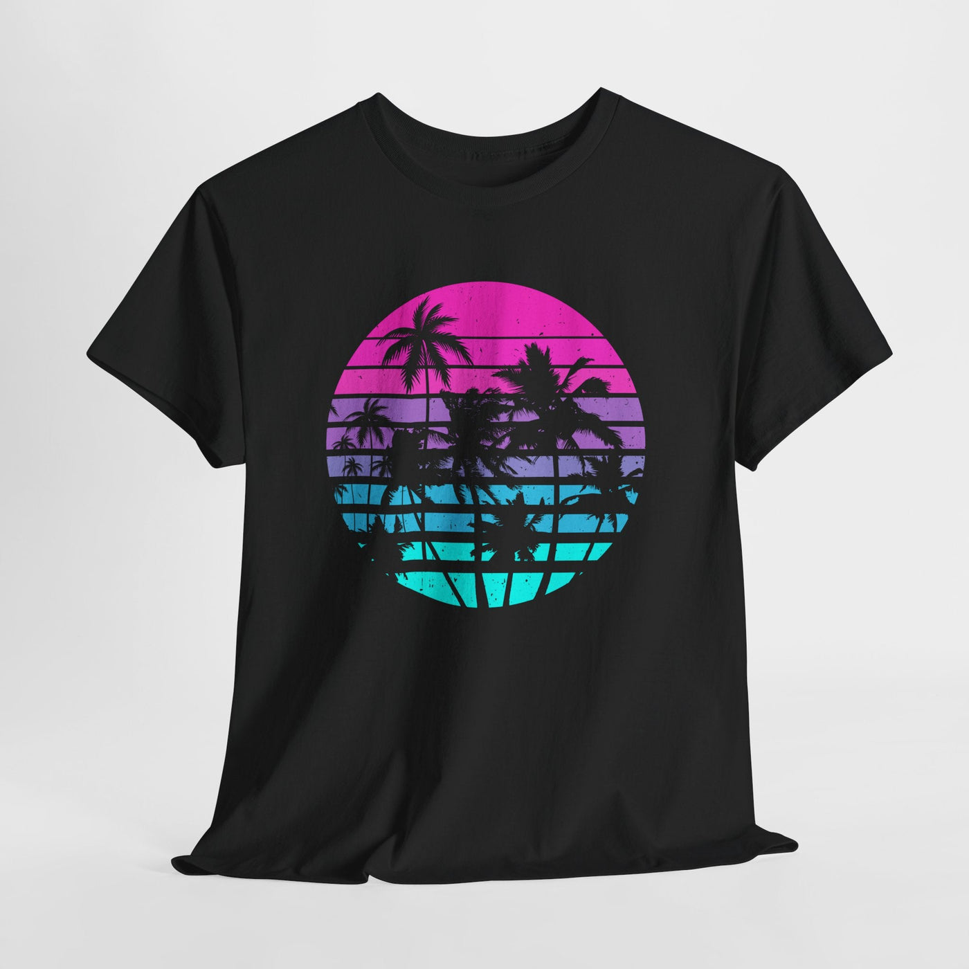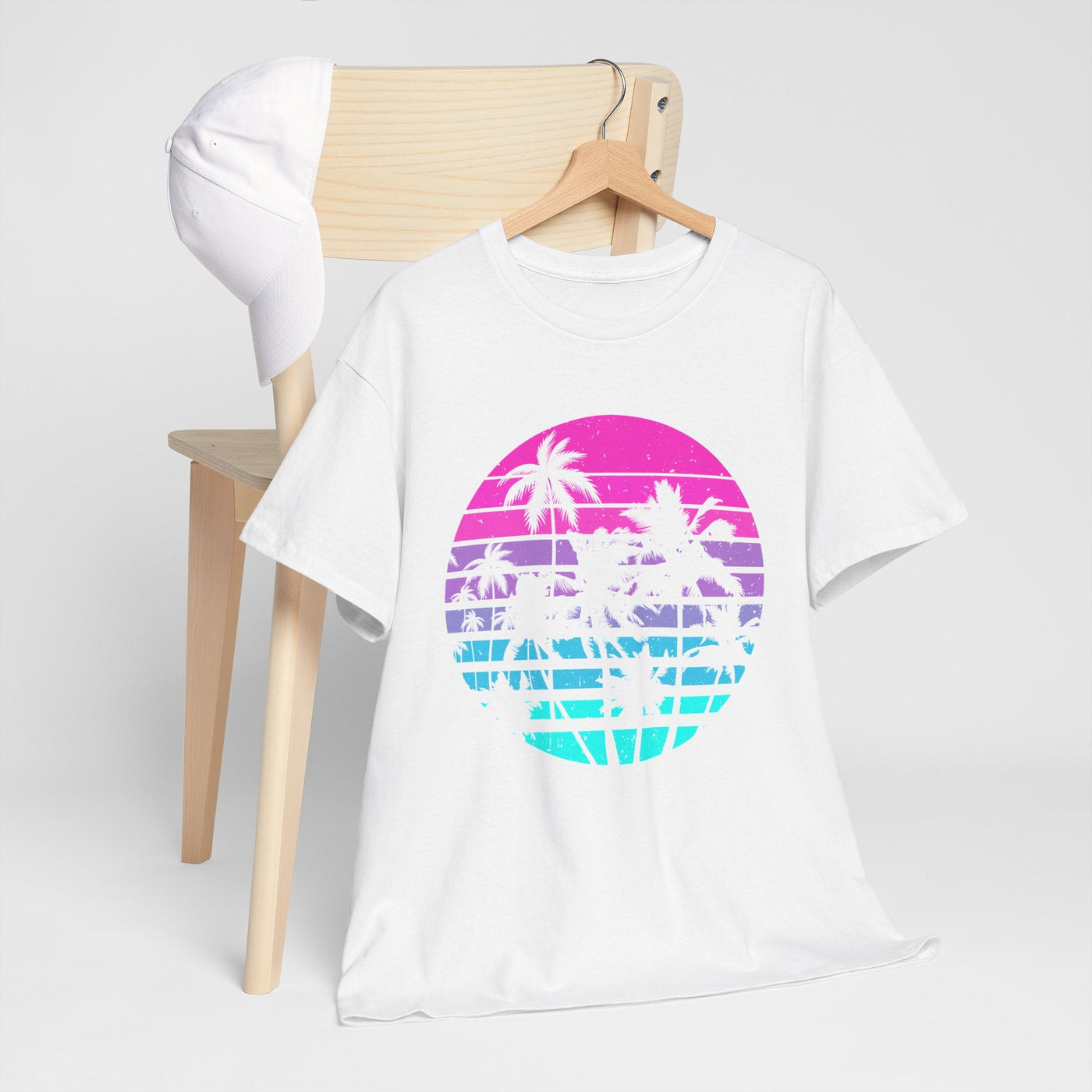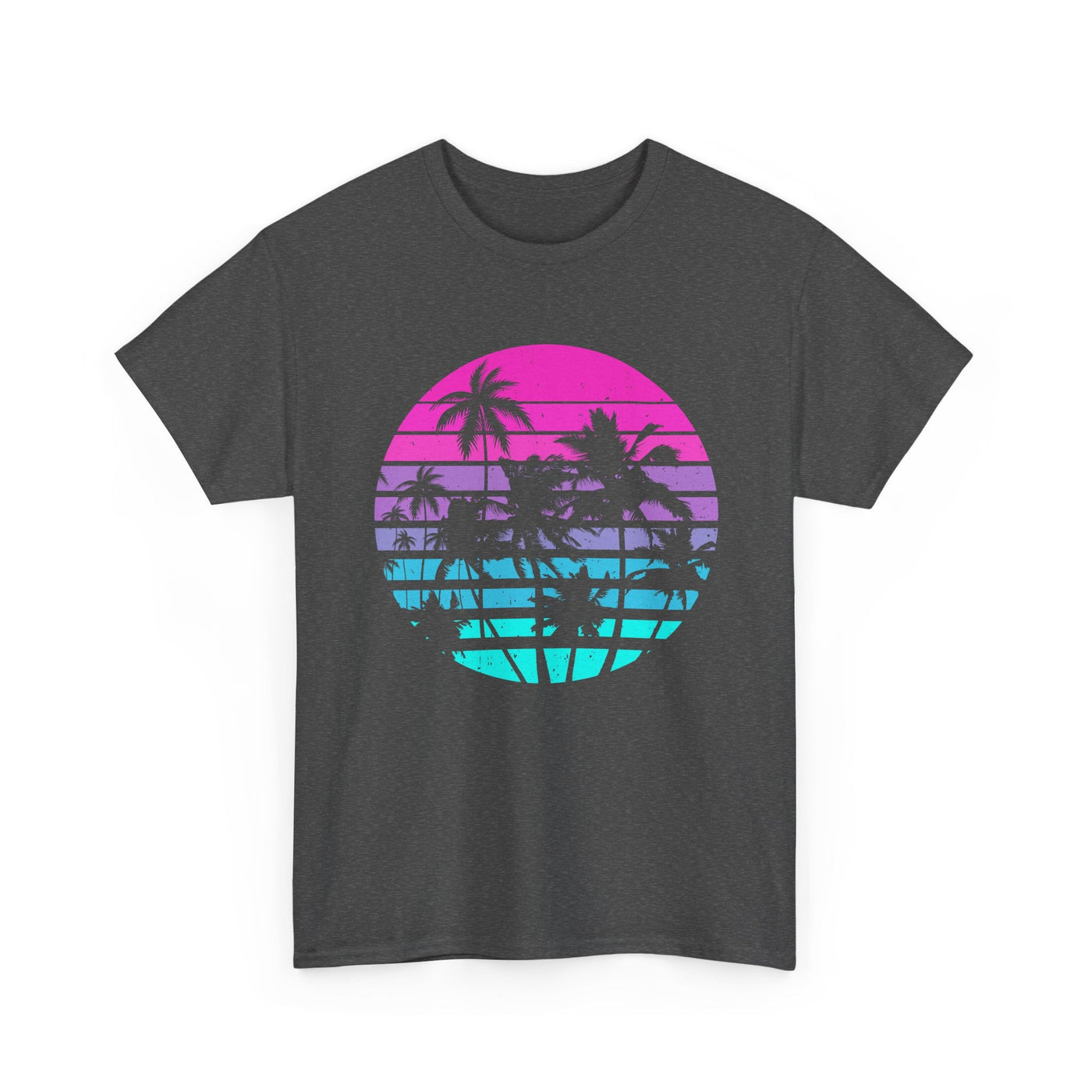 The Sunset Palm 80s Retro Graphic T-Shirt is a unisex heavy cotton tee that blends comfort with nostalgic style. Featuring a vibrant gradient palm tree design inspired by sunset vibes and retro 80s aesthetics, this graphic tee is perfect for beach outings, parties, holidays, or everyday casual wear. A must-have for retro fashion lovers, it’s a bold statement piece that radiates fun and relaxed energy.