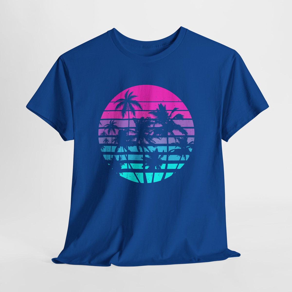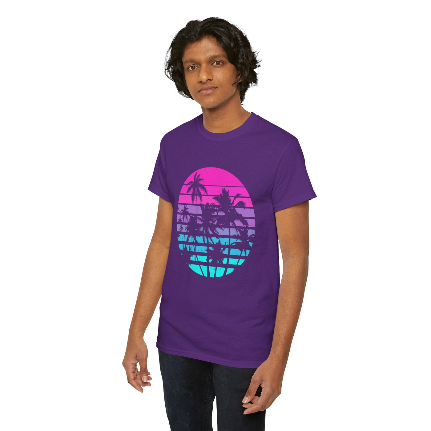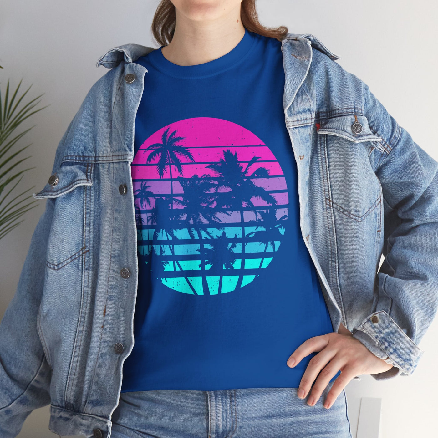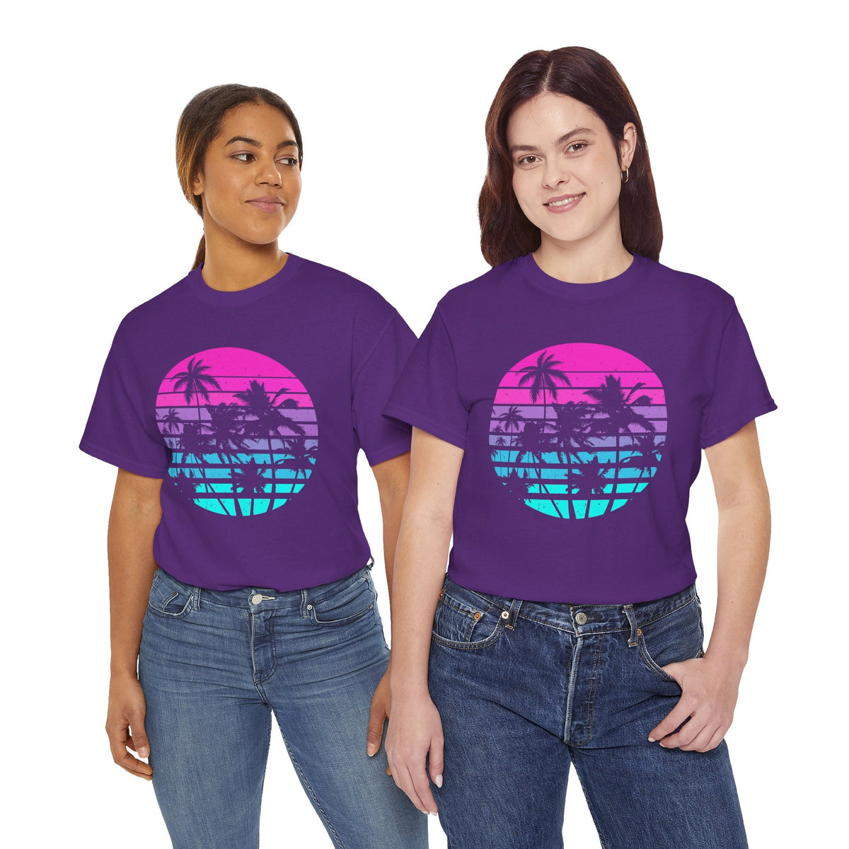 The Sunset Palm 80s Retro Graphic T-Shirt is a unisex heavy cotton tee that blends comfort with nostalgic style. Featuring a vibrant gradient palm tree design inspired by sunset vibes and retro 80s aesthetics, this graphic tee is perfect for beach outings, parties, holidays, or everyday casual wear. A must-have for retro fashion lovers, it’s a bold statement piece that radiates fun and relaxed energy.