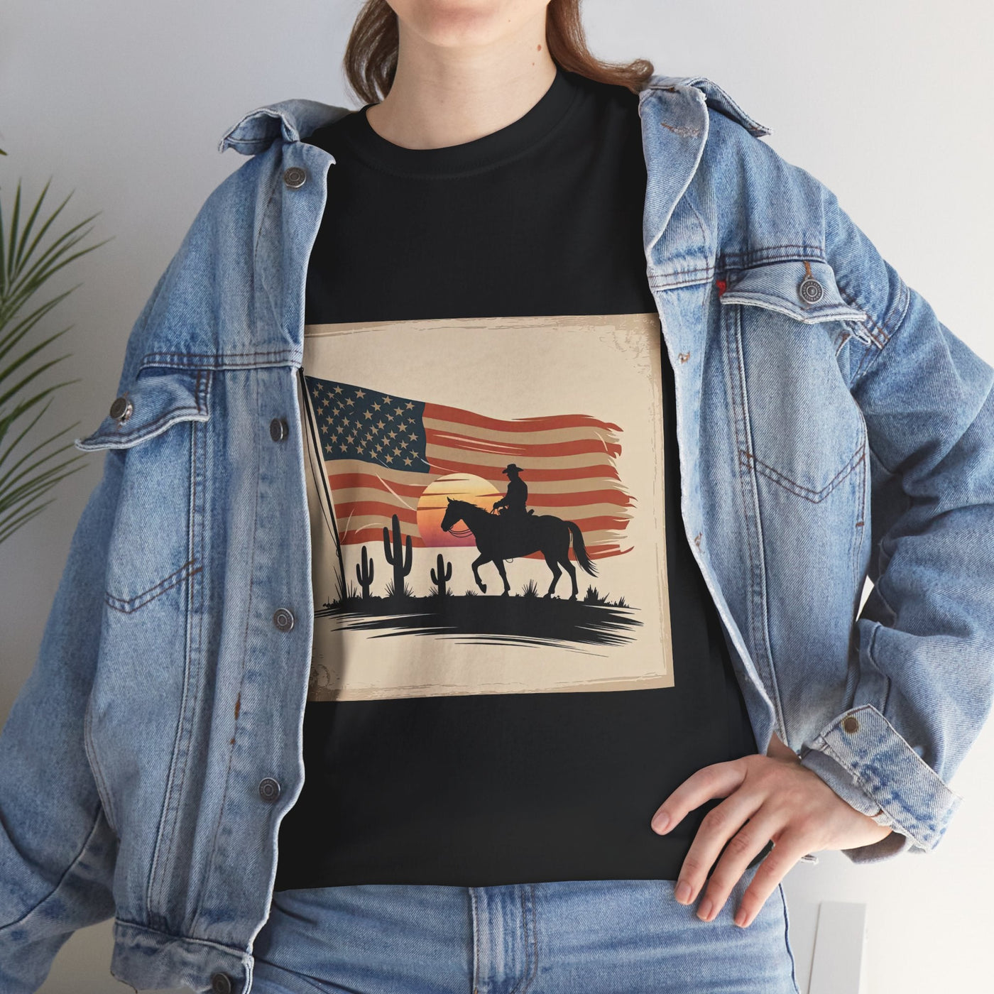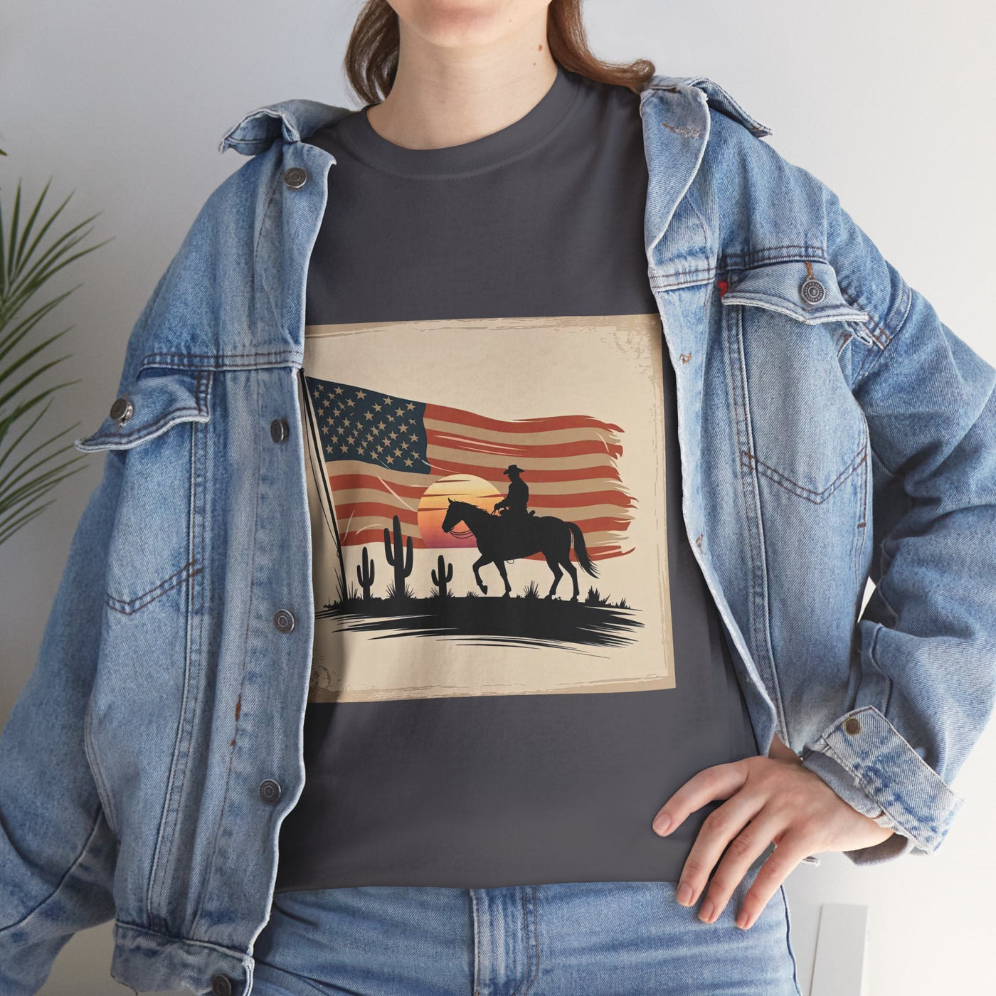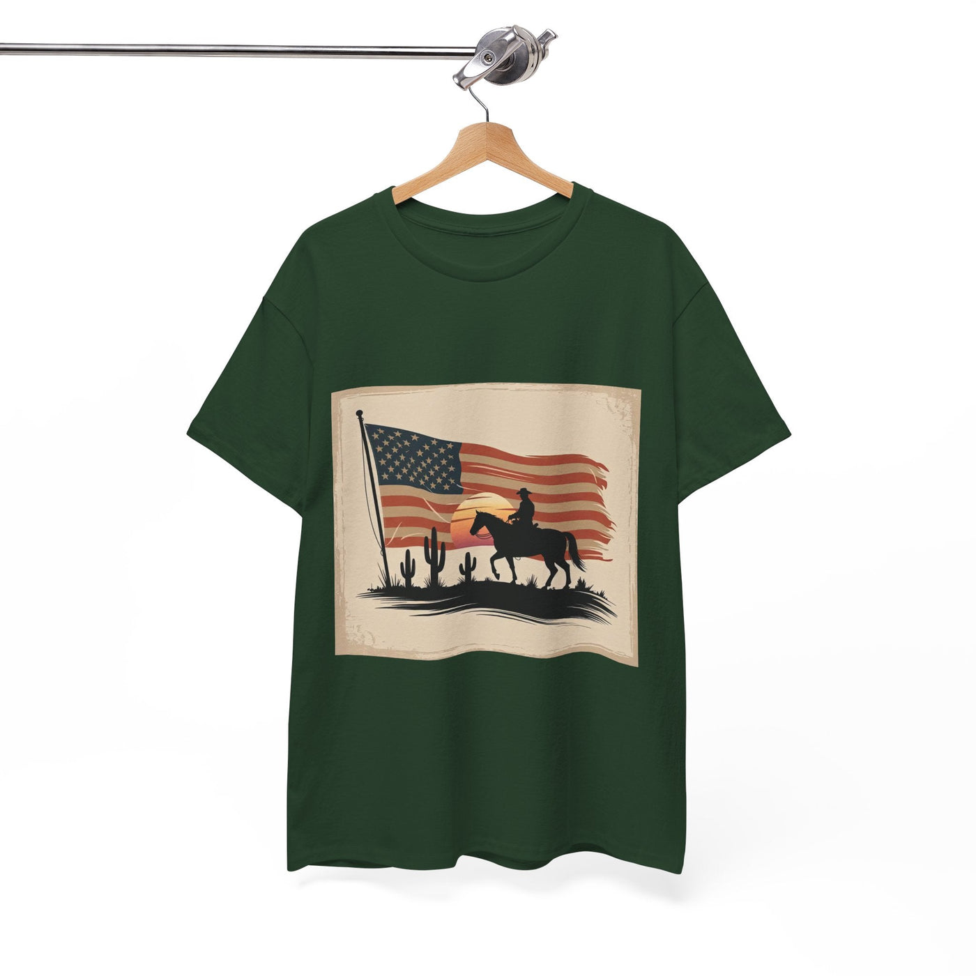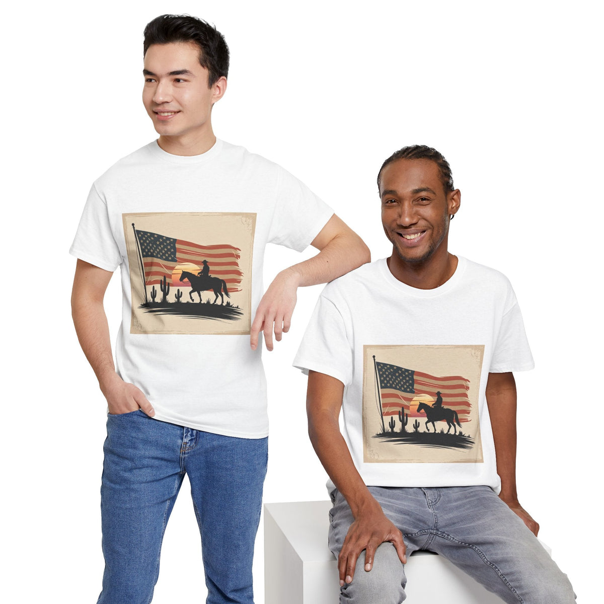 Celebrate patriotism and western charm with this Vintage Cowboy American Flag T-Shirt. Made from premium heavy cotton, this unisex tee offers lasting comfort and a timeless fit. Its bold design captures nostalgic Americana, making it perfect for Independence Day, Memorial Day, country concerts, or casual everyday wear. Whether you’re a history buff, outdoor enthusiast, or simply love western style, this shirt adds a rugged yet stylish touch to any wardrobe.
