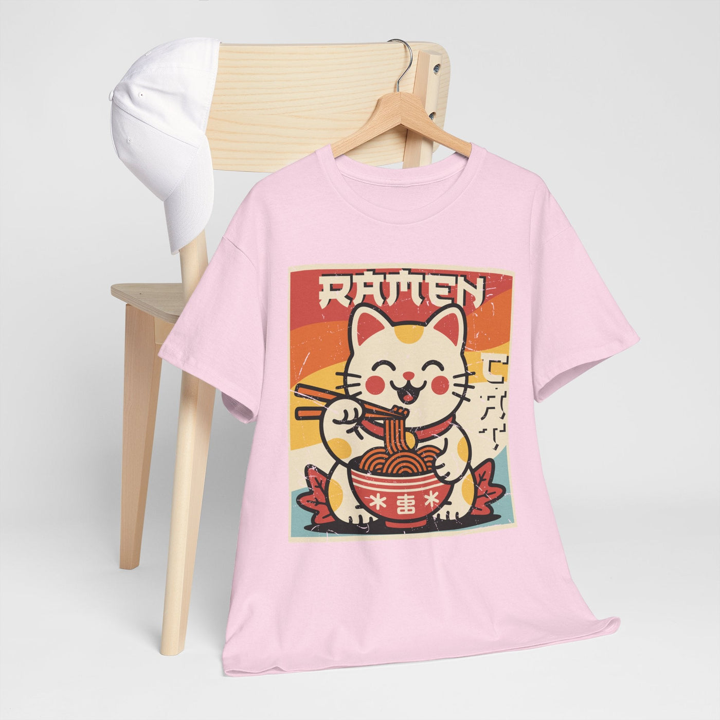 Add a dash of fun to your wardrobe with this Cute Ramen Cat Unisex Heavy Cotton Tee! Featuring a charming cat enjoying a bowl of ramen, this shirt combines adorable design with cozy comfort. Perfect for foodies, cat lovers, and anyone who enjoys playful fashion, it’s great for casual days, food festivals, or hanging out with friends. A delightful gift choice for birthdays, holidays, or anyone who appreciates cute, quirky style.