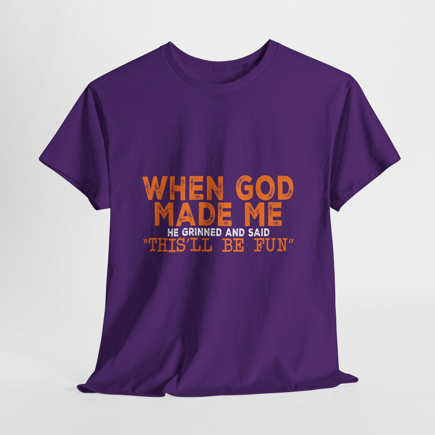 Add a dose of humor and charm to your wardrobe with our Unisex Heavy Cotton Tee featuring a fun religious quote. Designed for both comfort and self-expression, this tee is perfect for casual hangouts, relaxed weekends, or lighthearted gatherings. It’s an excellent gift for those who enjoy blending faith with a playful spirit, making it ideal for birthdays, holidays, or just-because moments.