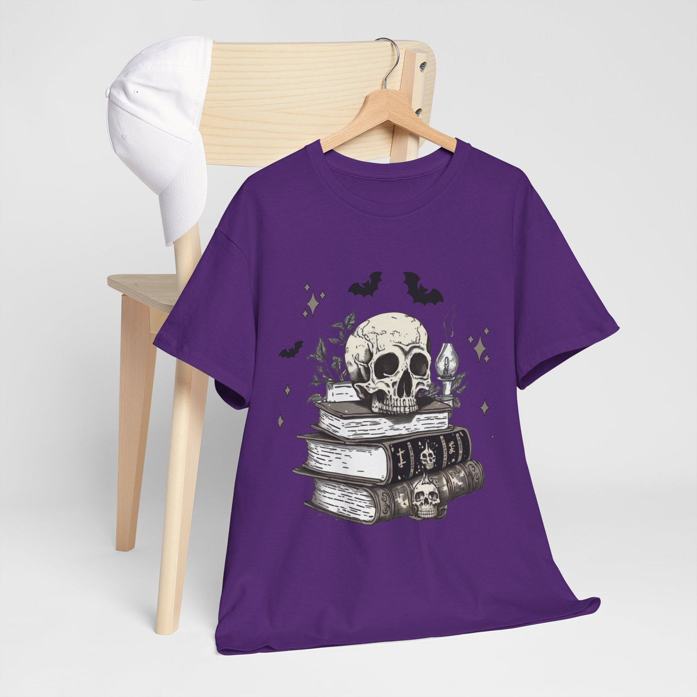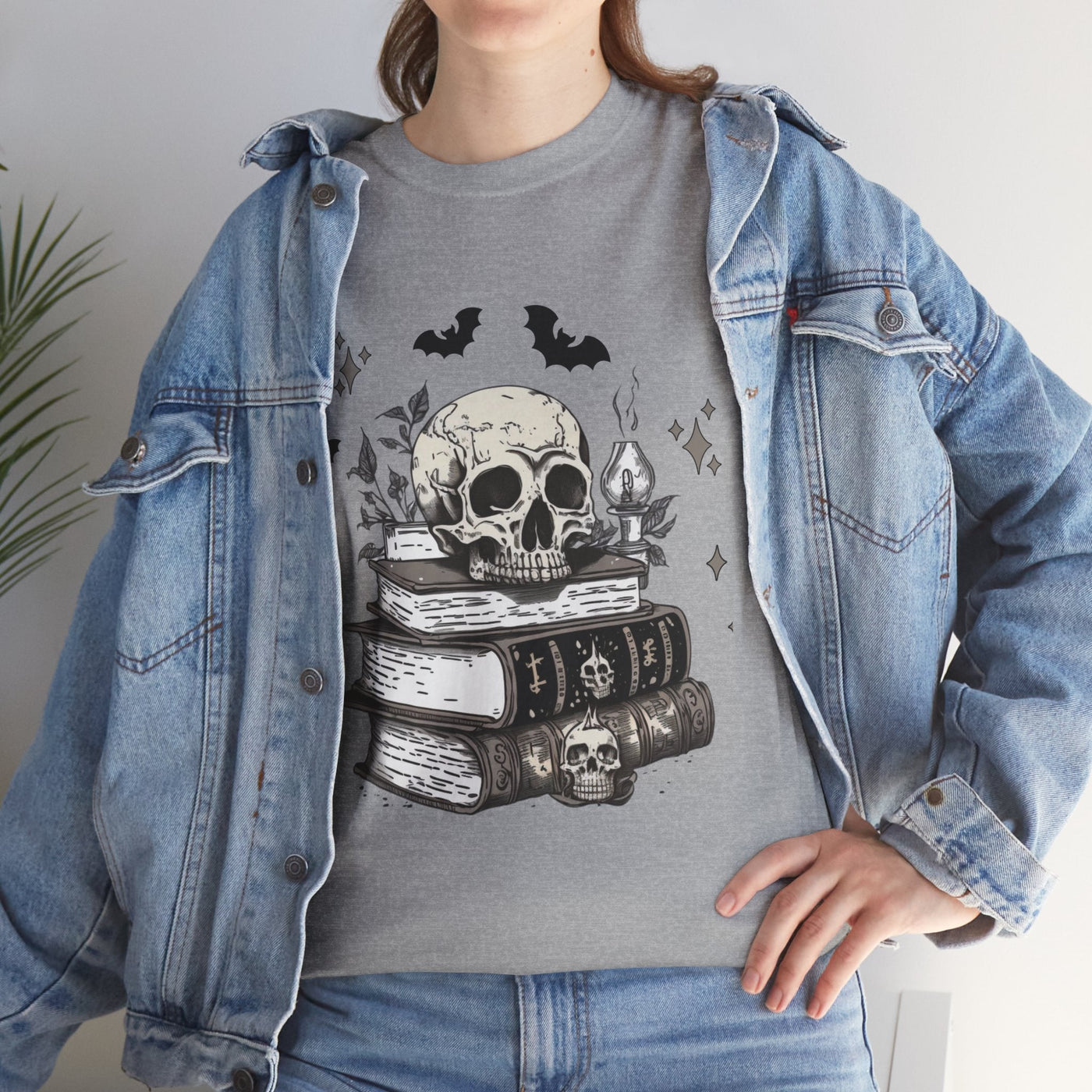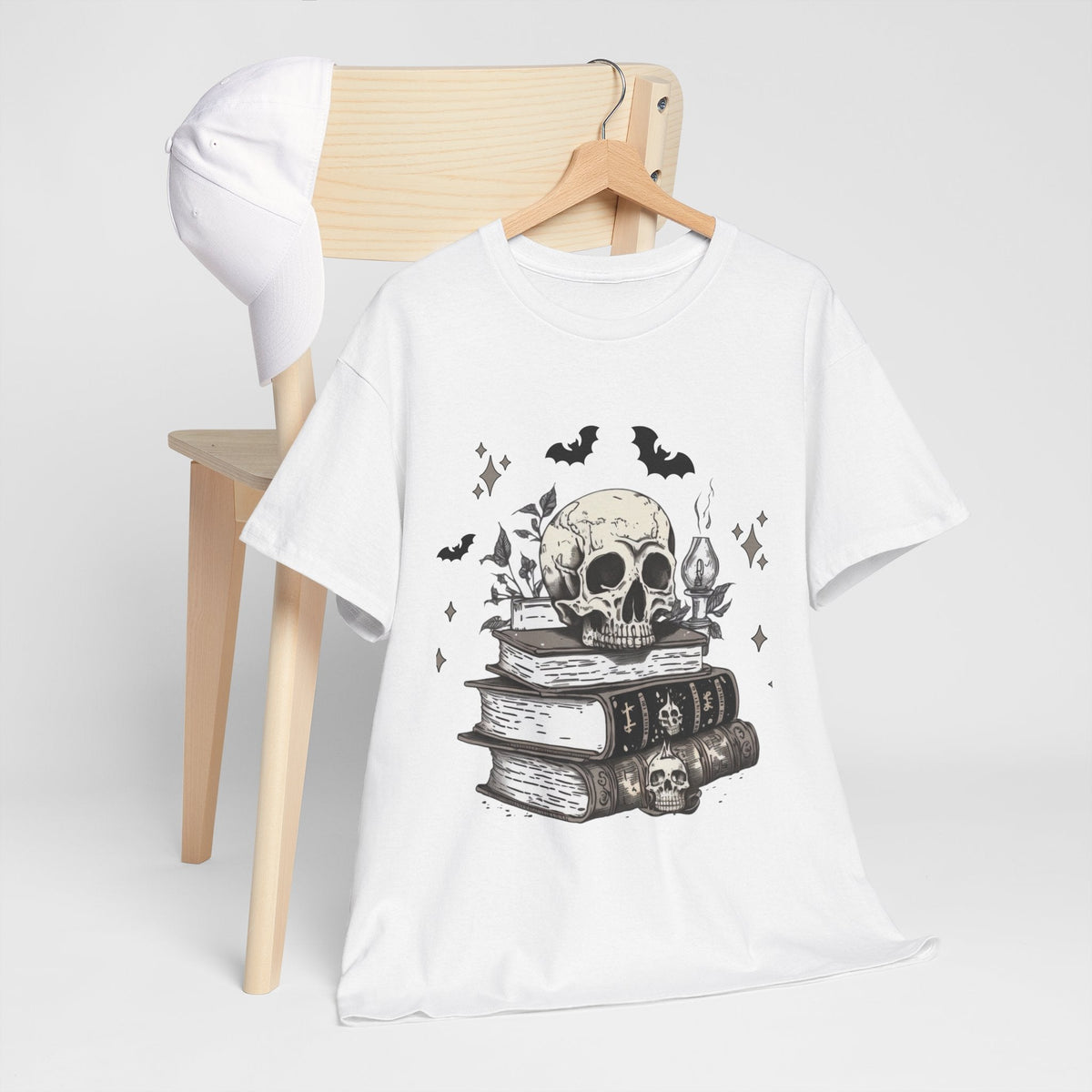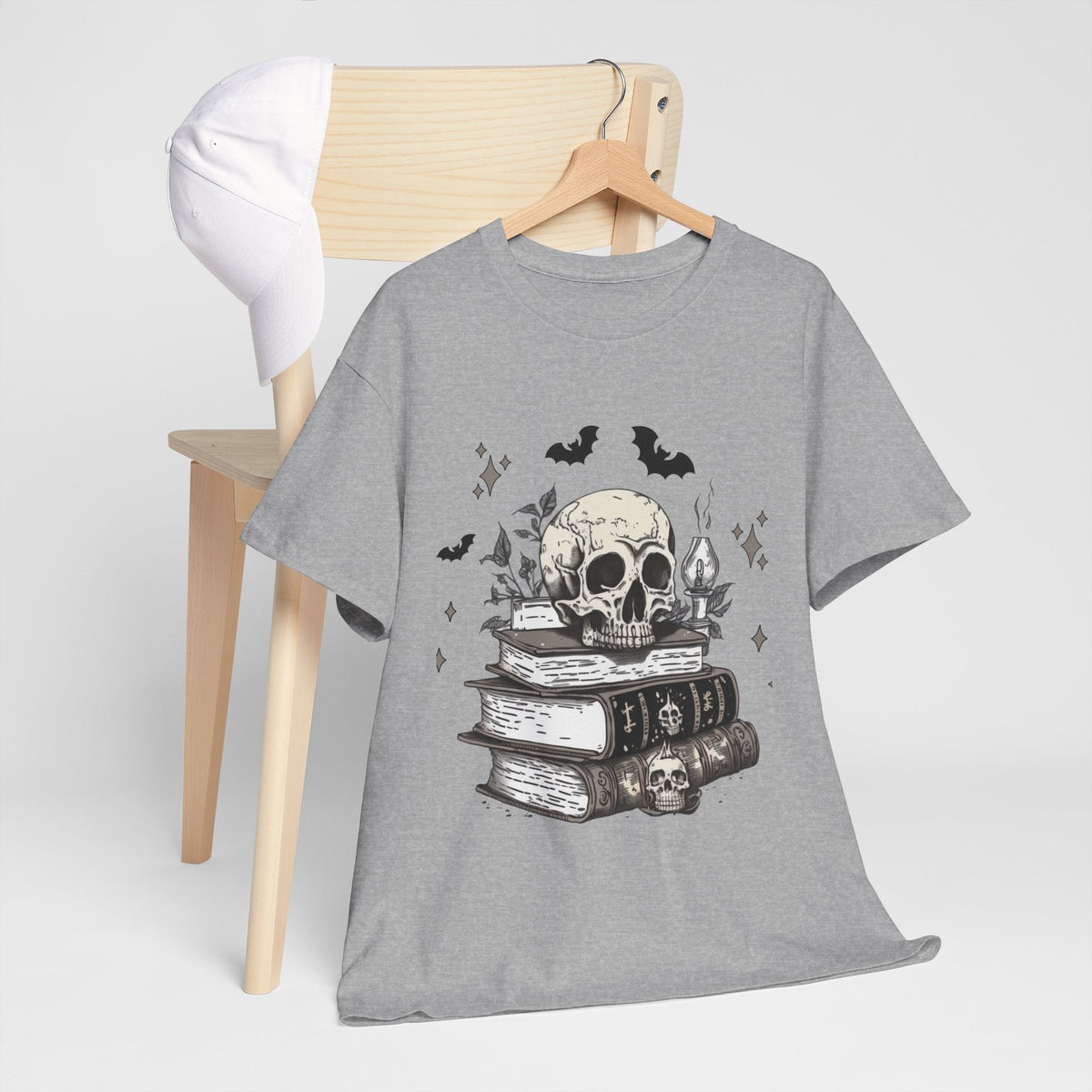 Unleash your inner dark academia with this Gothic Skull and Books Halloween T-Shirt! Perfect for book lovers, gothic enthusiasts, and fans of spooky aesthetics, this tee combines style, comfort, and mystery.