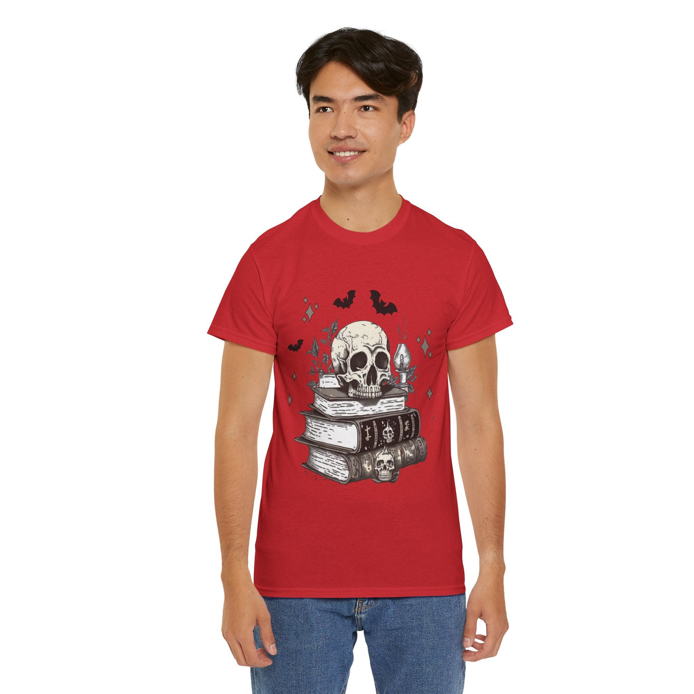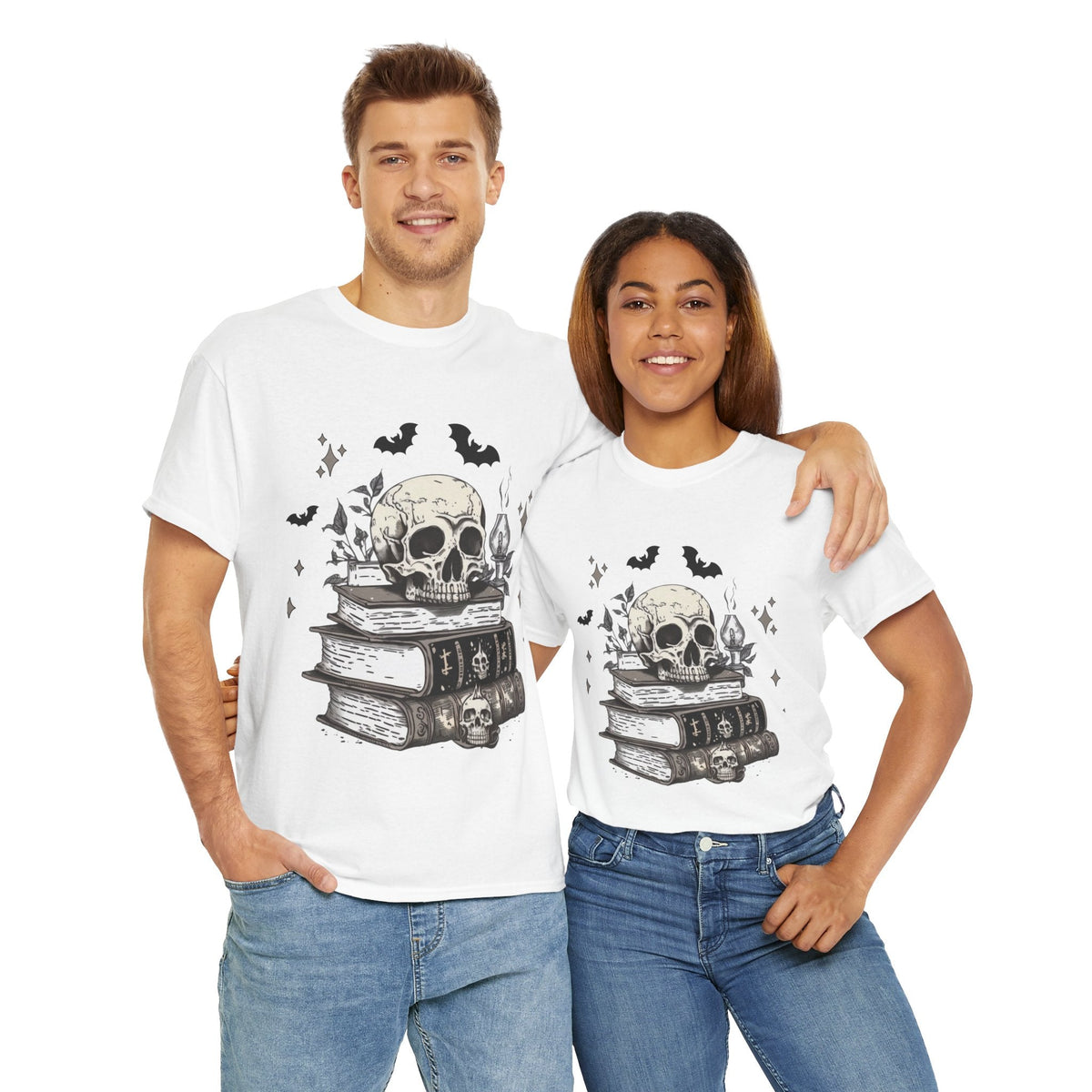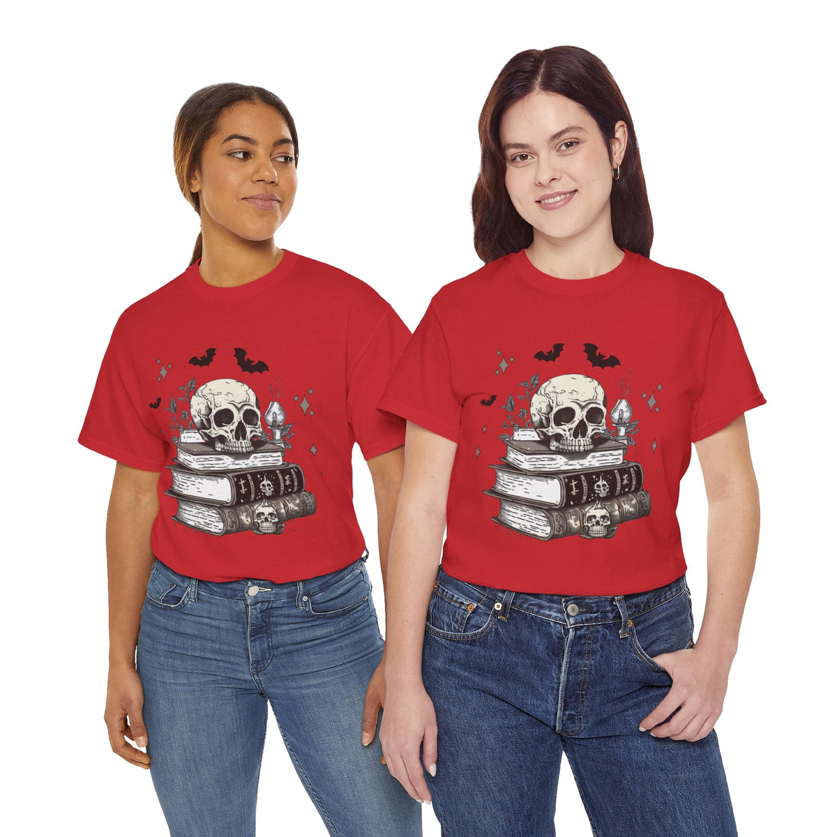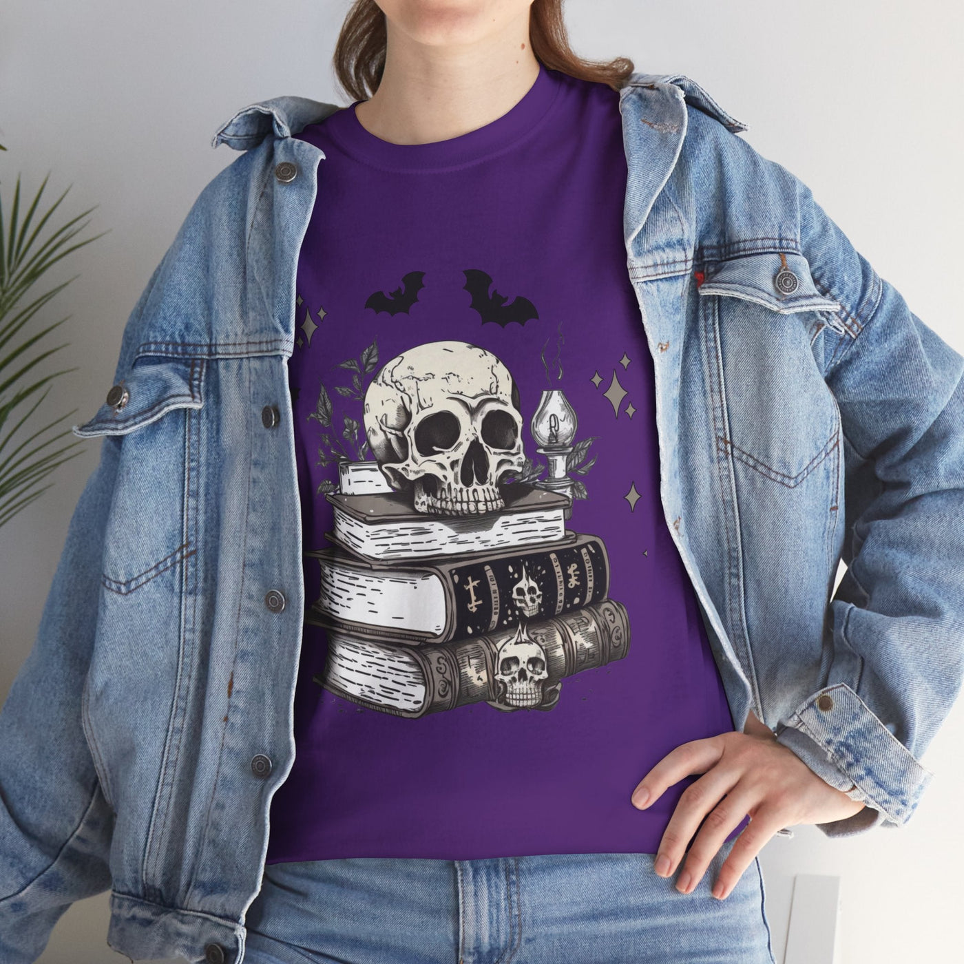 Unleash your inner dark academia with this Gothic Skull and Books Halloween T-Shirt! Perfect for book lovers, gothic enthusiasts, and fans of spooky aesthetics, this tee combines style, comfort, and mystery.