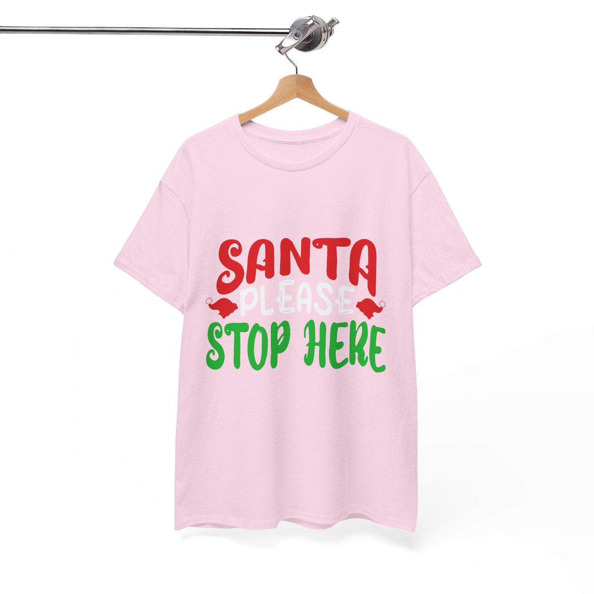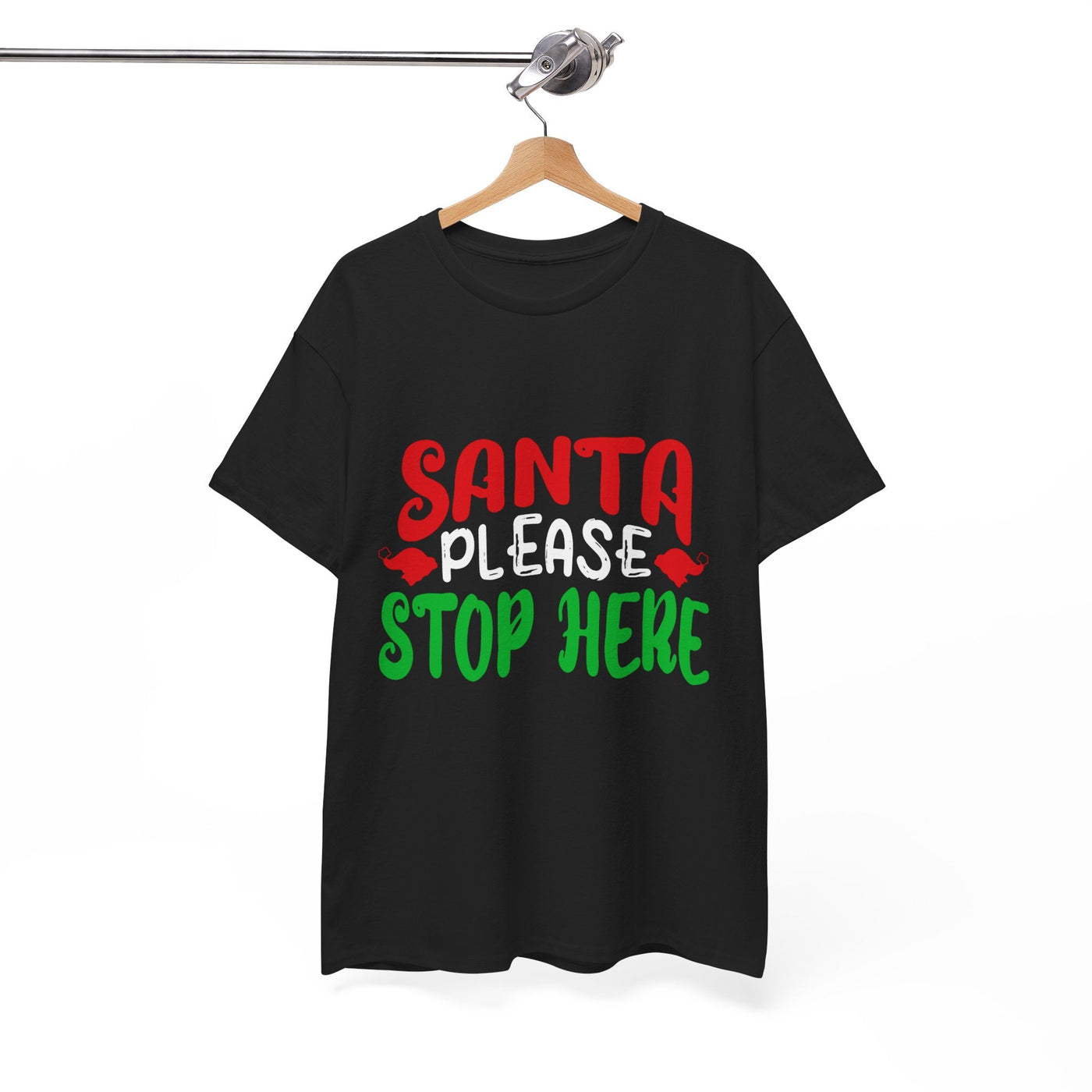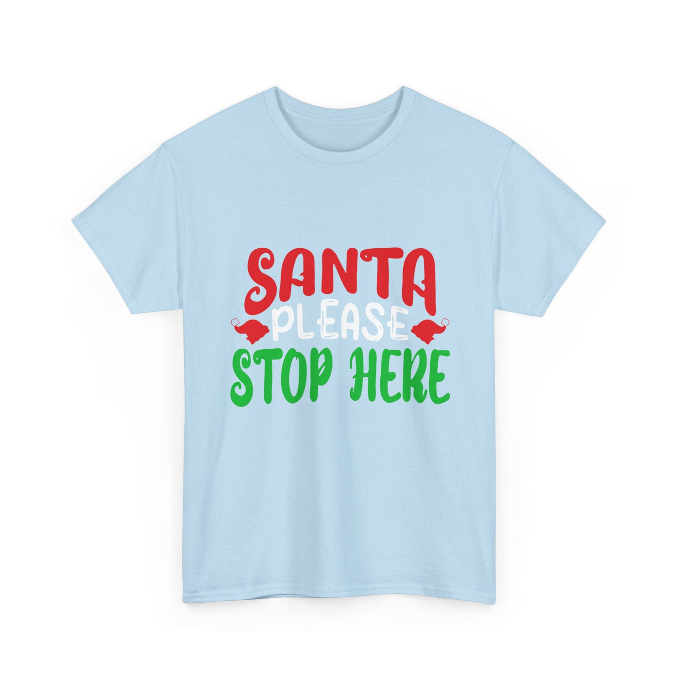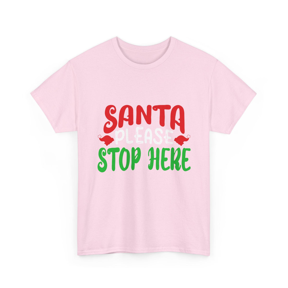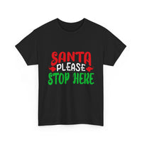 Bring the holiday cheer with the Santa Please Stop Here Unisex T-Shirt! Fun, festive, and comfortable, this tee is the perfect choice for Christmas parties, family photos, or cozy nights in.