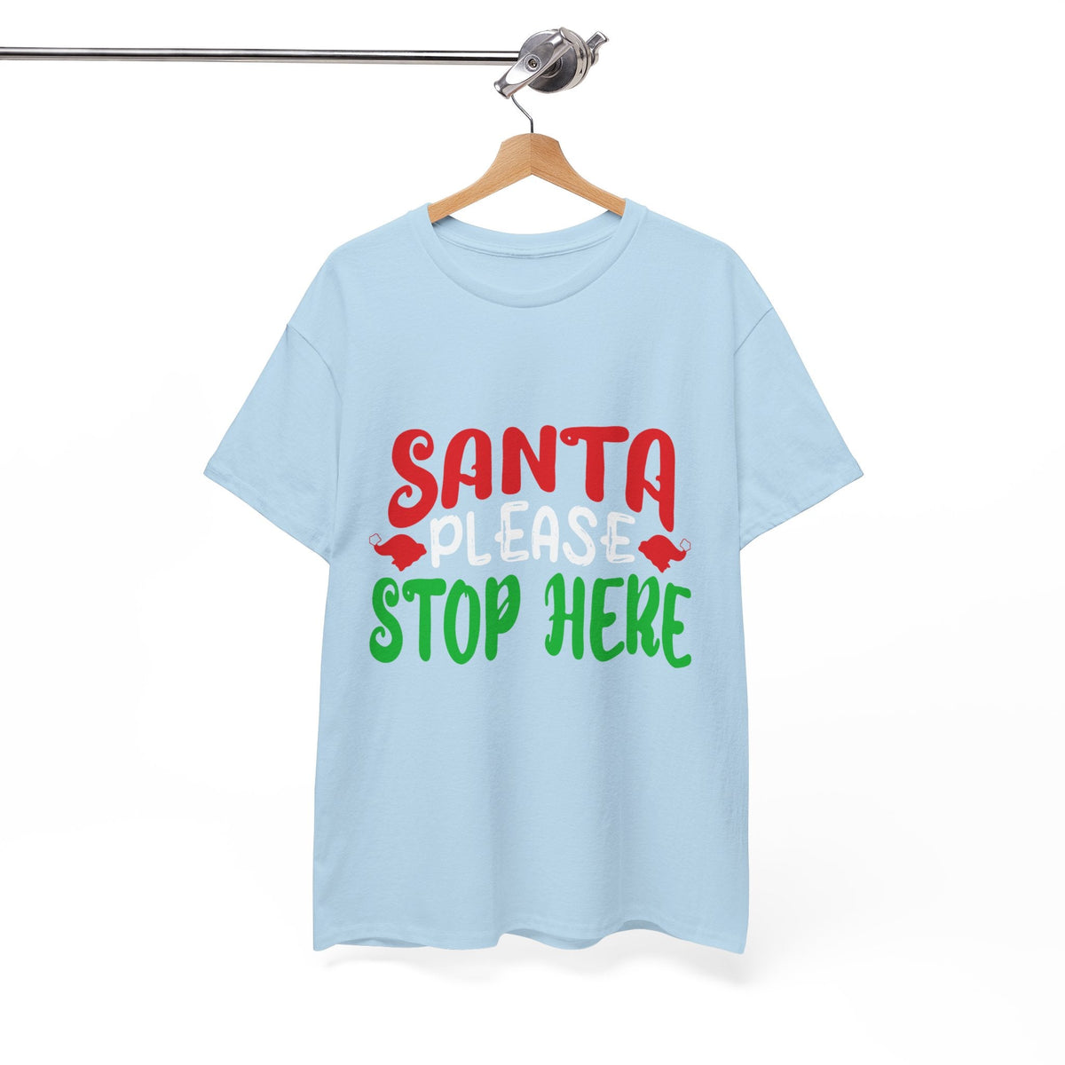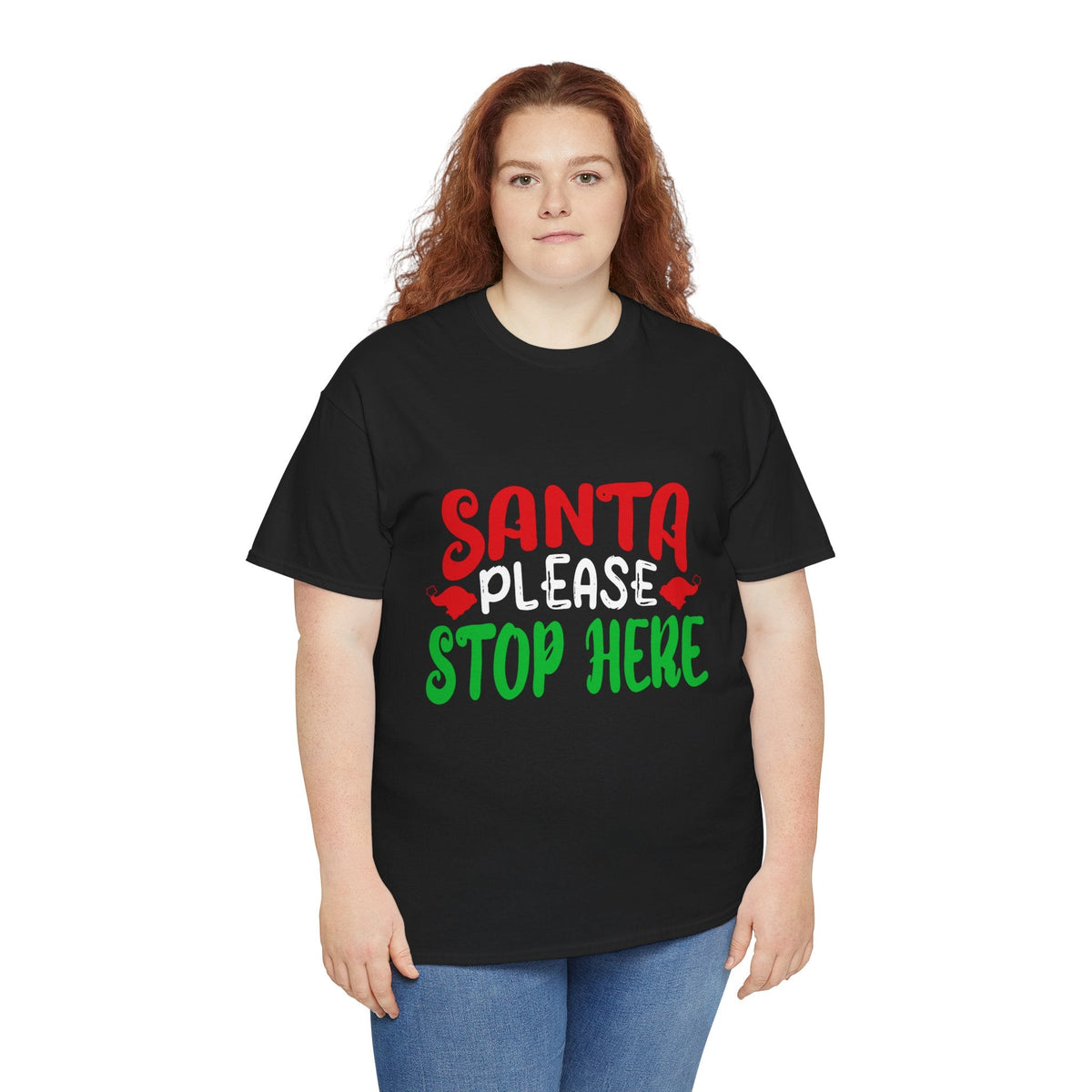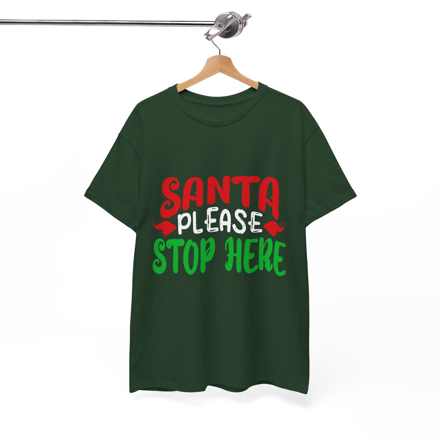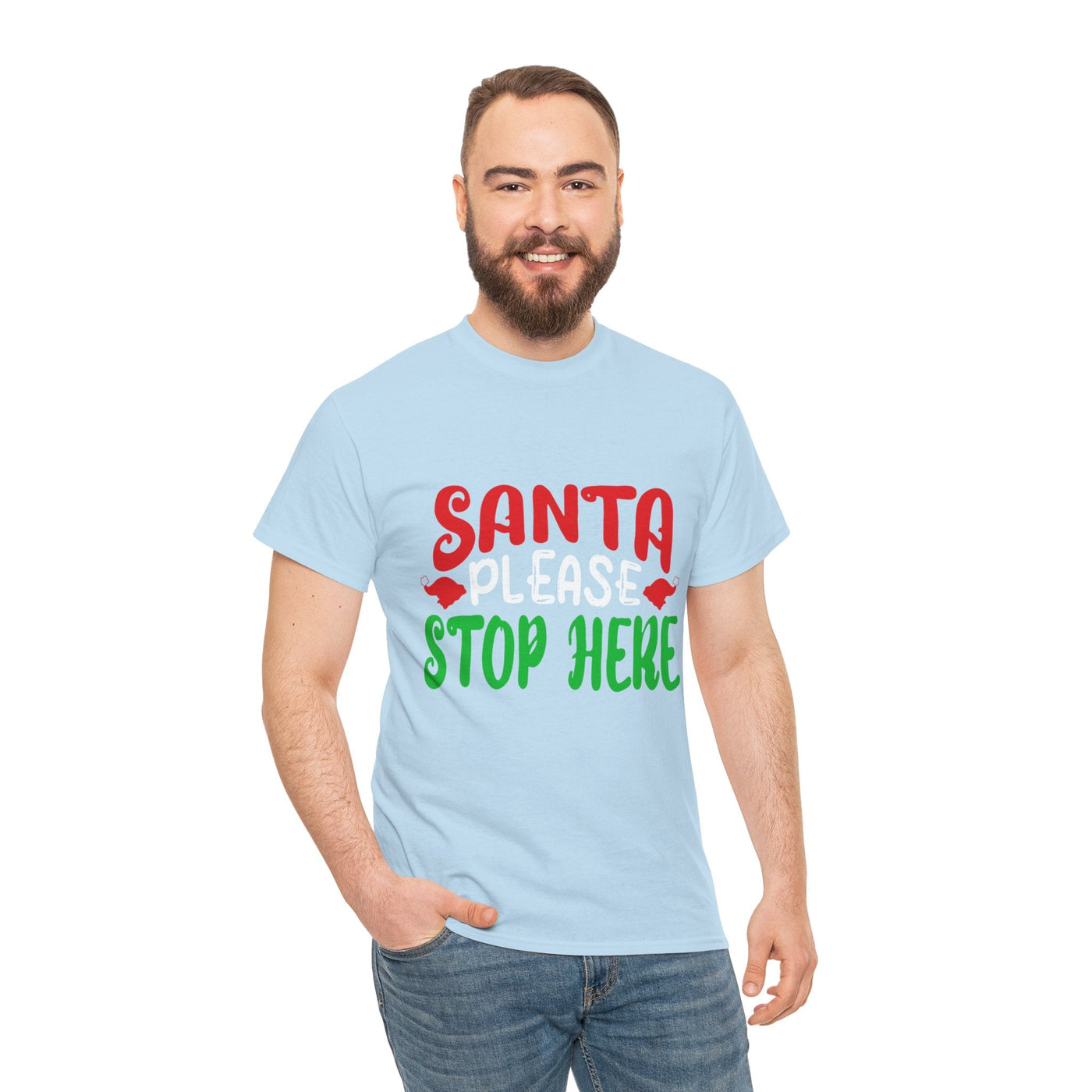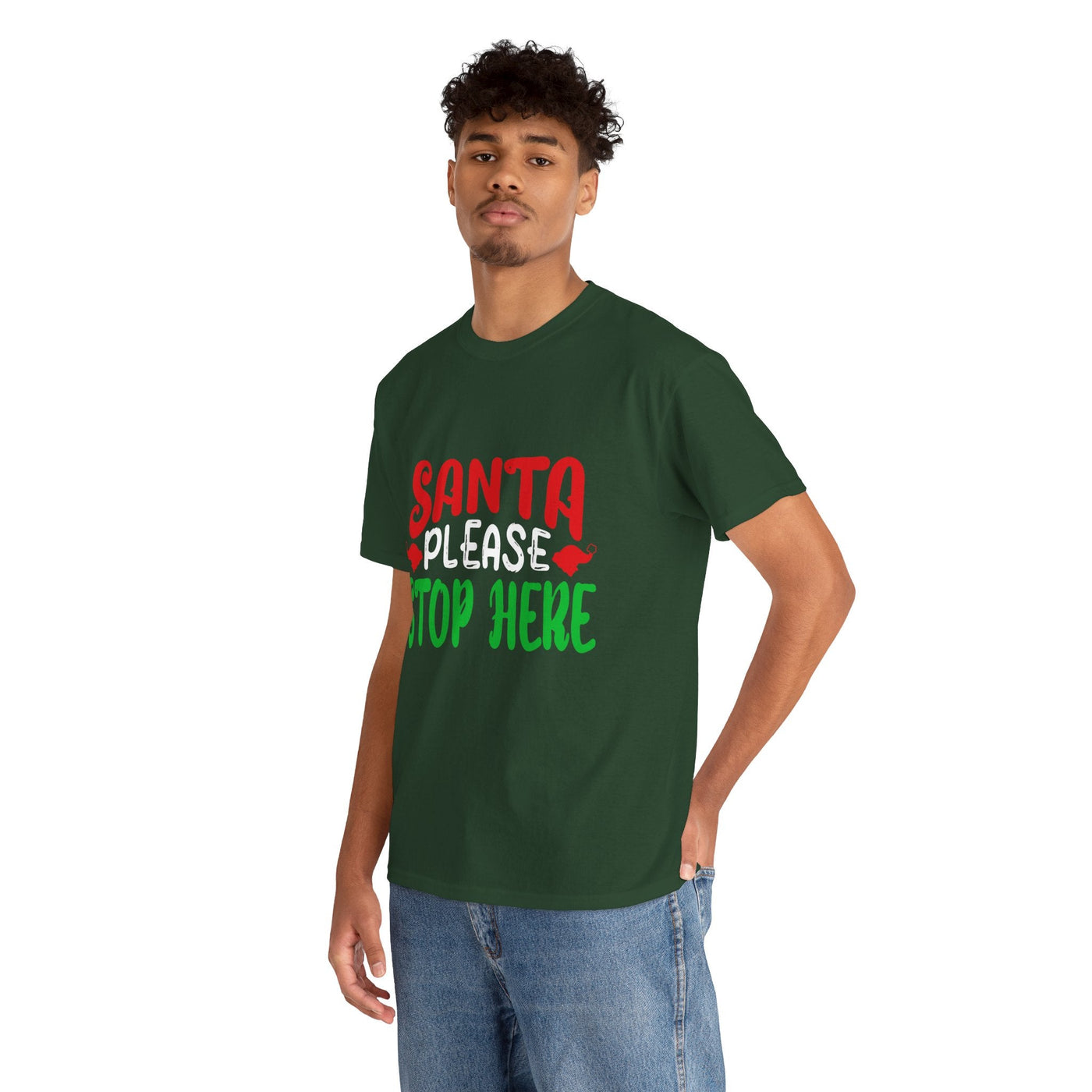 Bring the holiday cheer with the Santa Please Stop Here Unisex T-Shirt! Fun, festive, and comfortable, this tee is the perfect choice for Christmas parties, family photos, or cozy nights in.